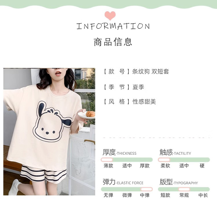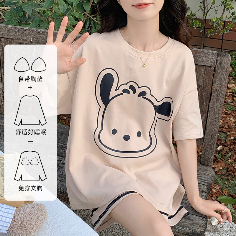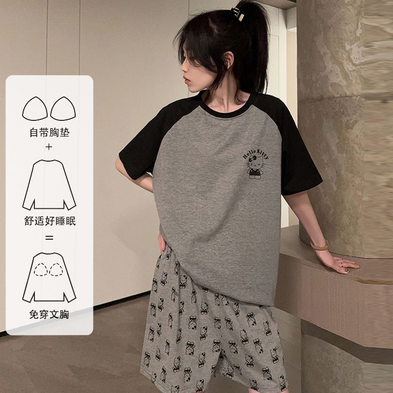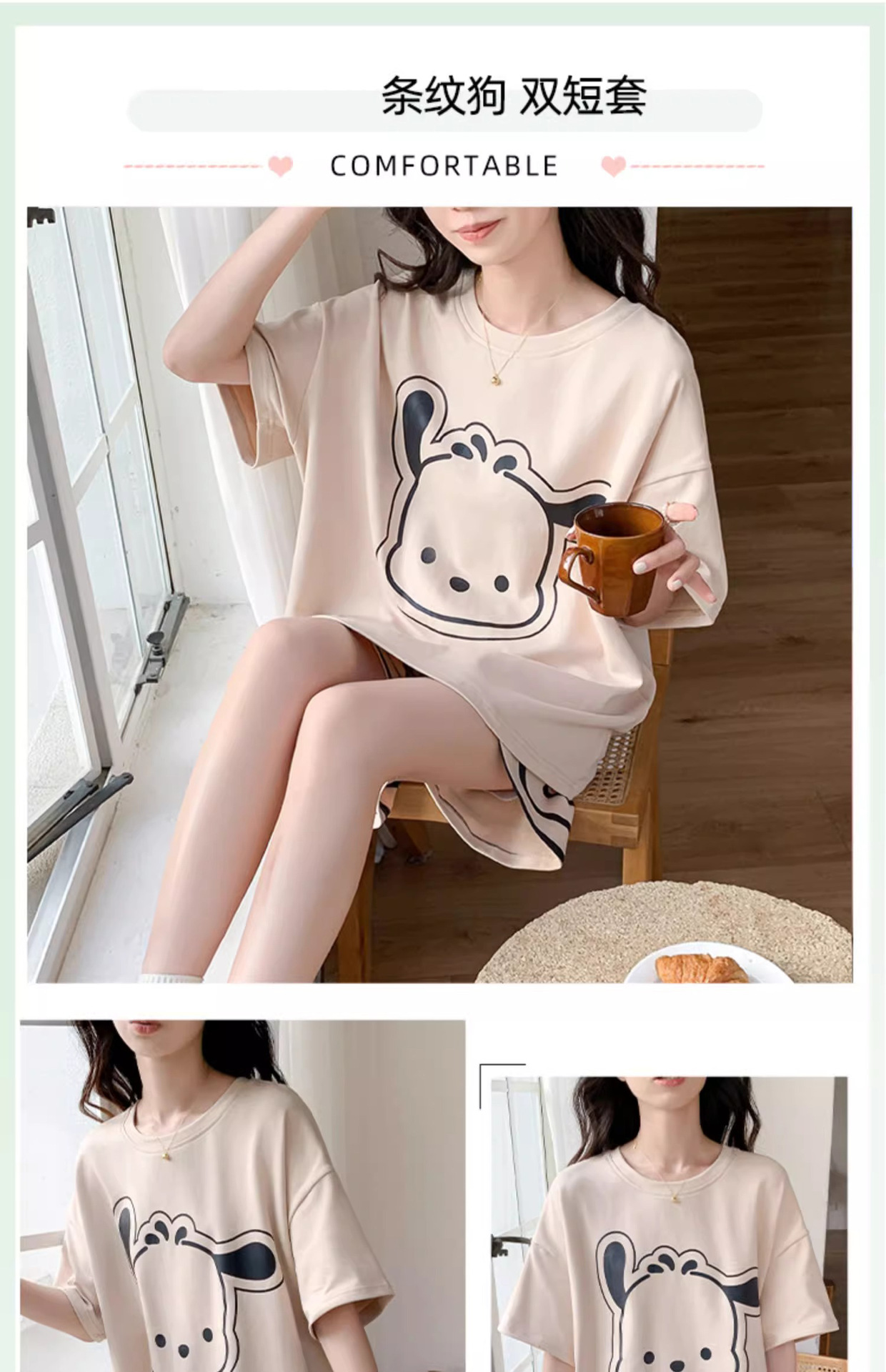 여름 시원한 잠옷 여성용 반팔 캐주얼 귀여운 만화 통통녀 가슴 패드 투피스 세트와 경량 편안한 홈 웨어스토어 가기
