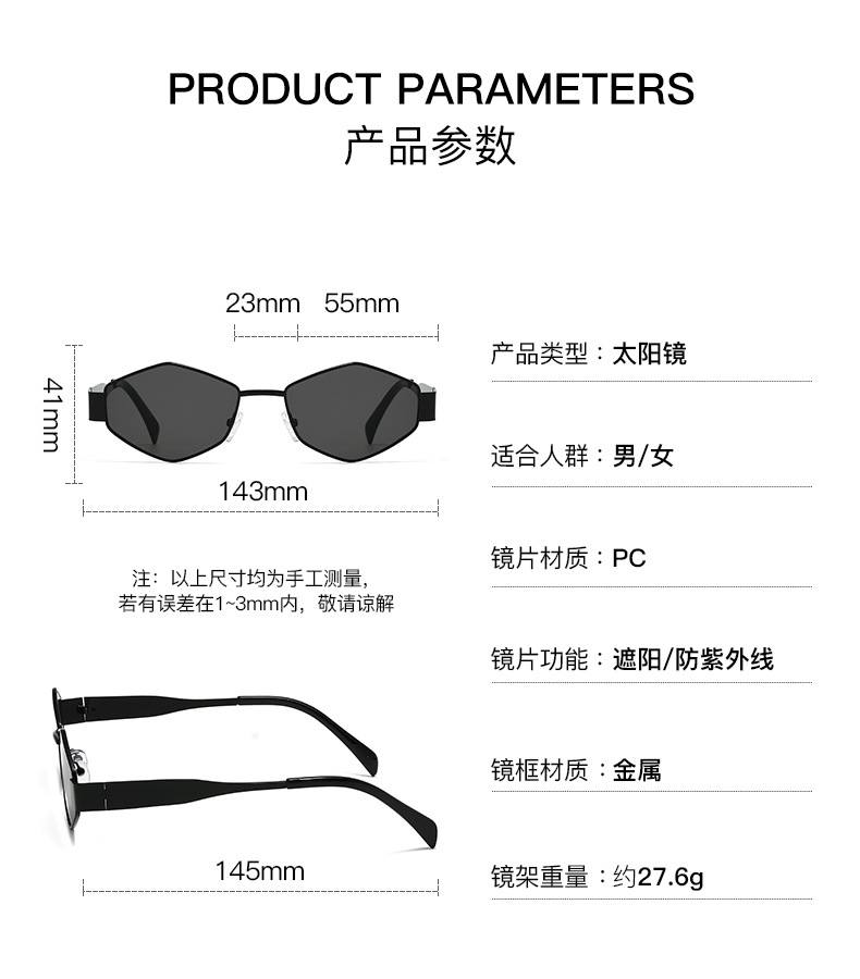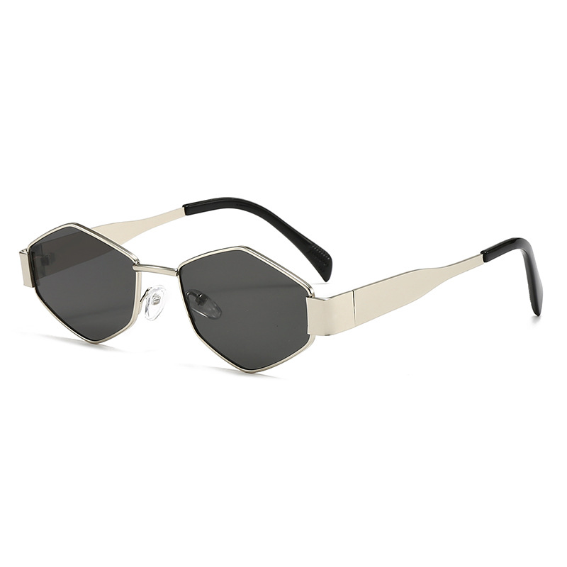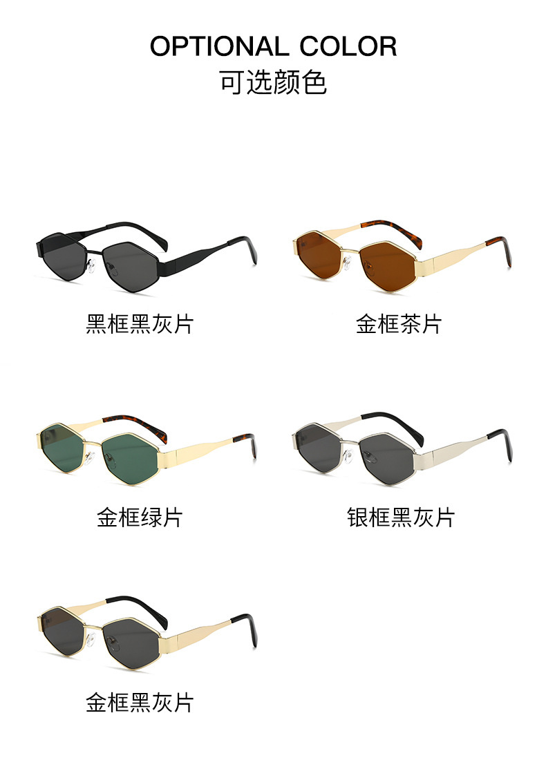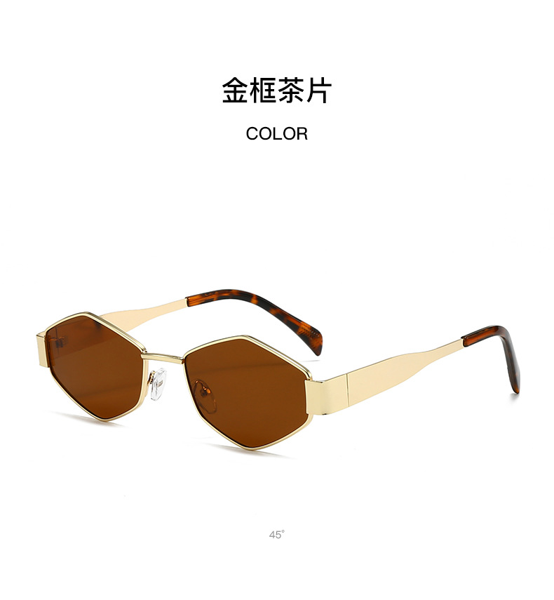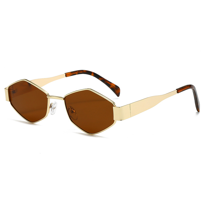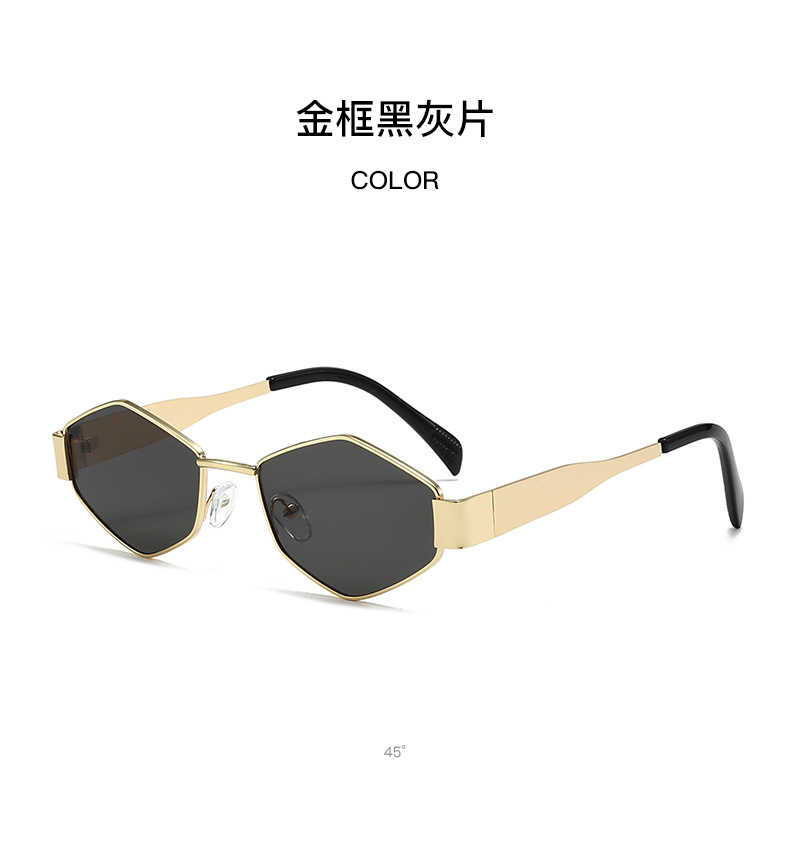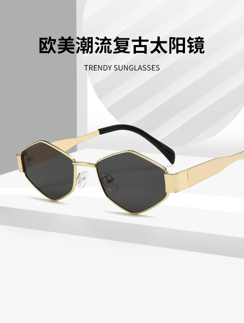 국경 간 새로운 작은 프레임 다각형 유럽과 미국 스타일의 고양이 눈 선글라스 여성의 작은 얼굴 독특한 금속 프레임 다이아몬드 선글라스