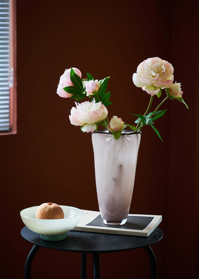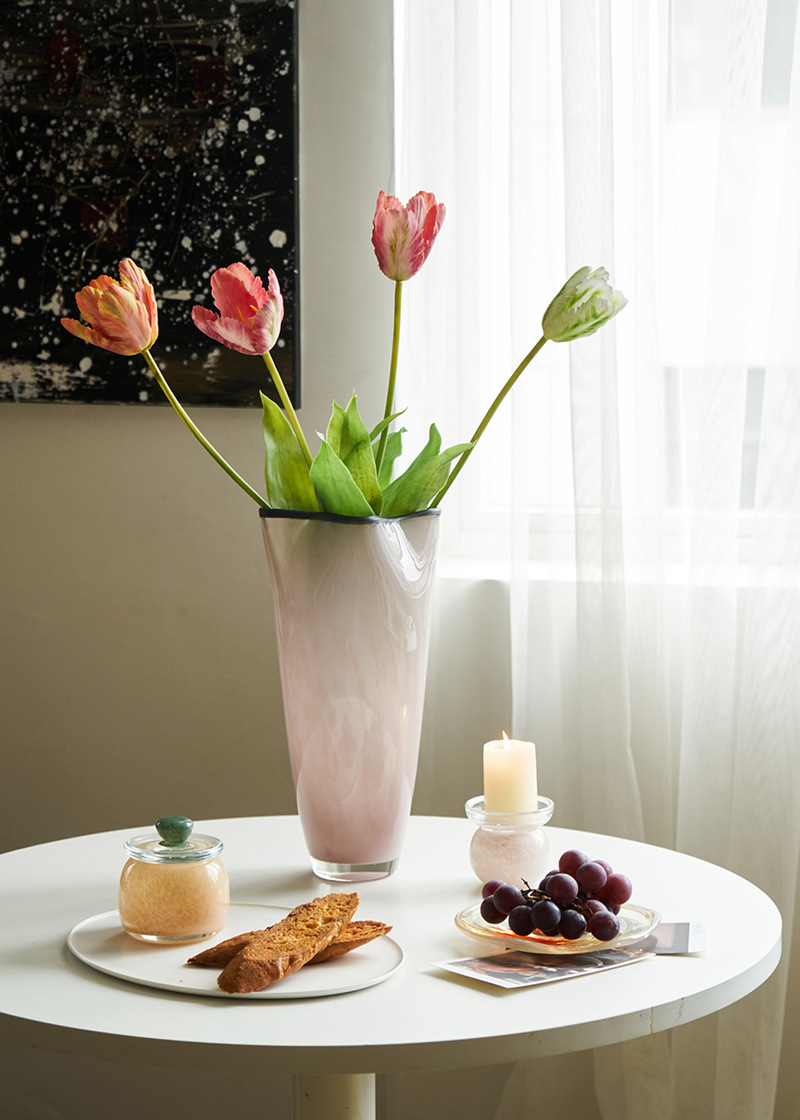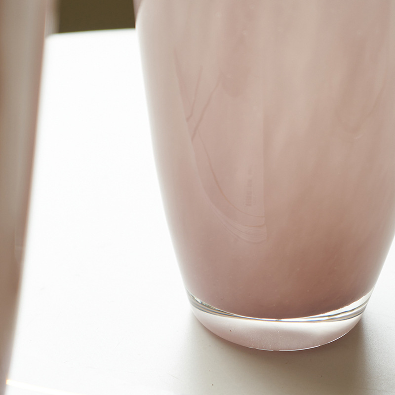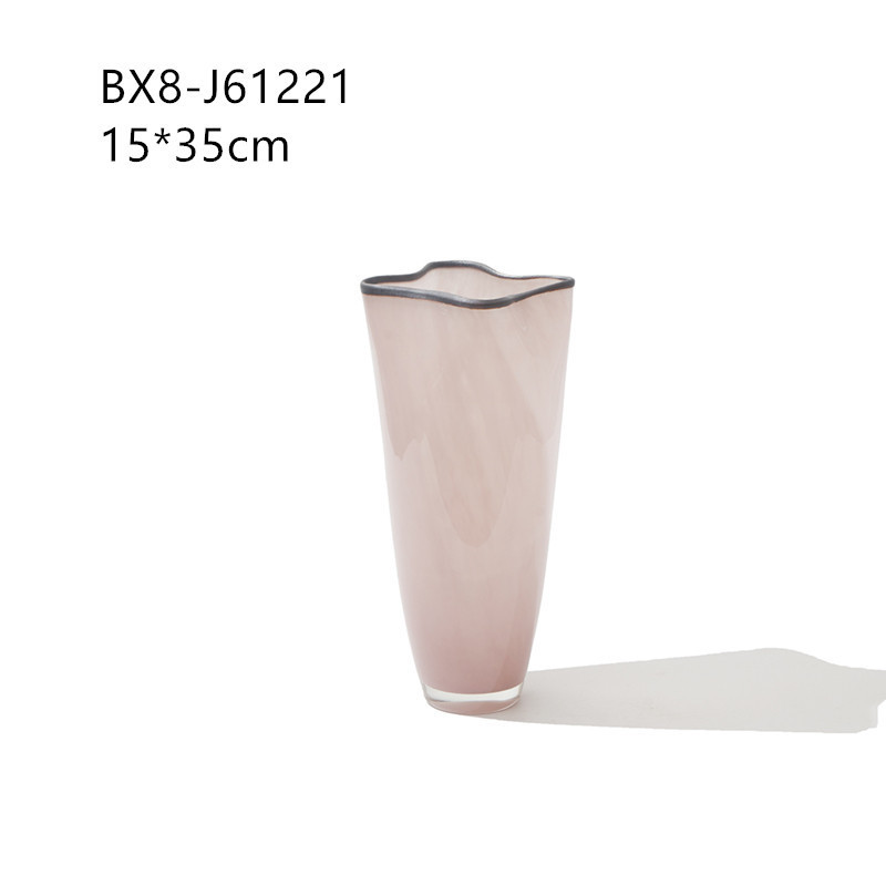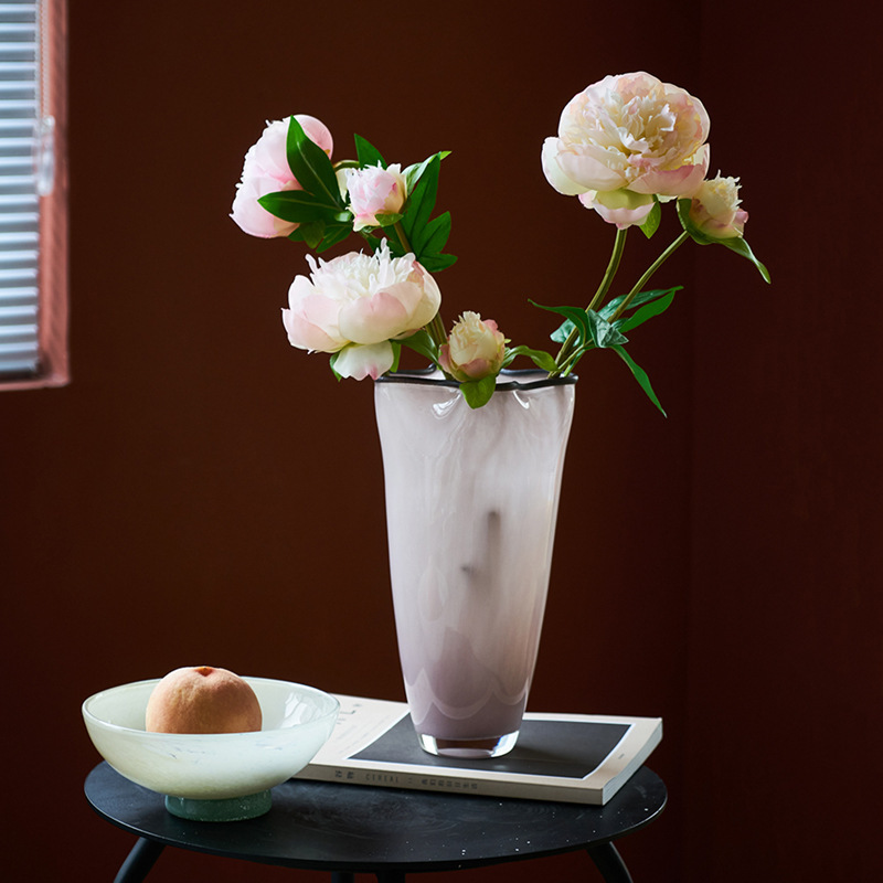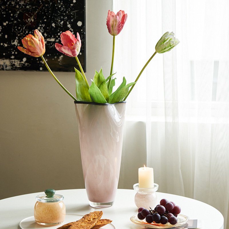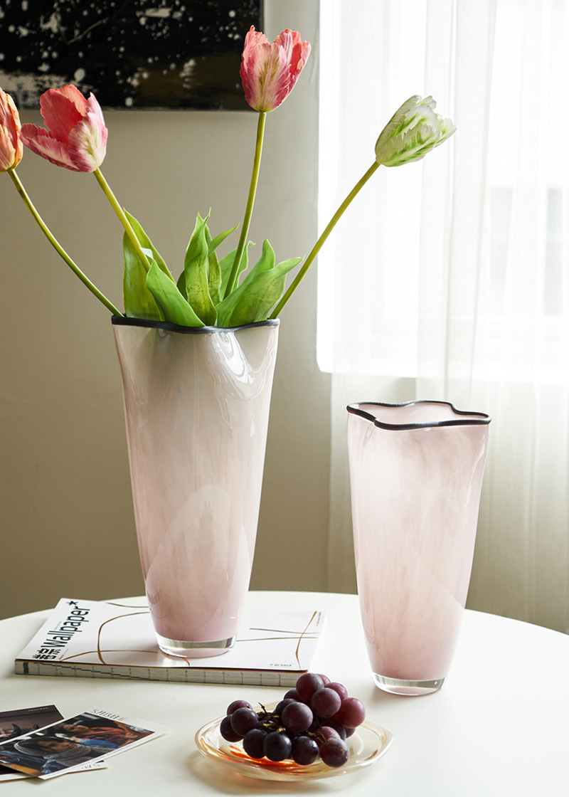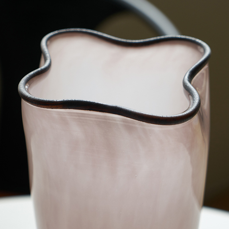 중간 고대 스타일 핑크 네 잎 클로버 수제 유리 꽃병 거실 데스크탑 홈 꽃 모델 룸 부드러운 꽃병