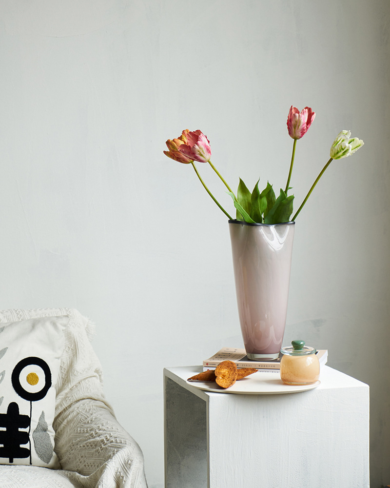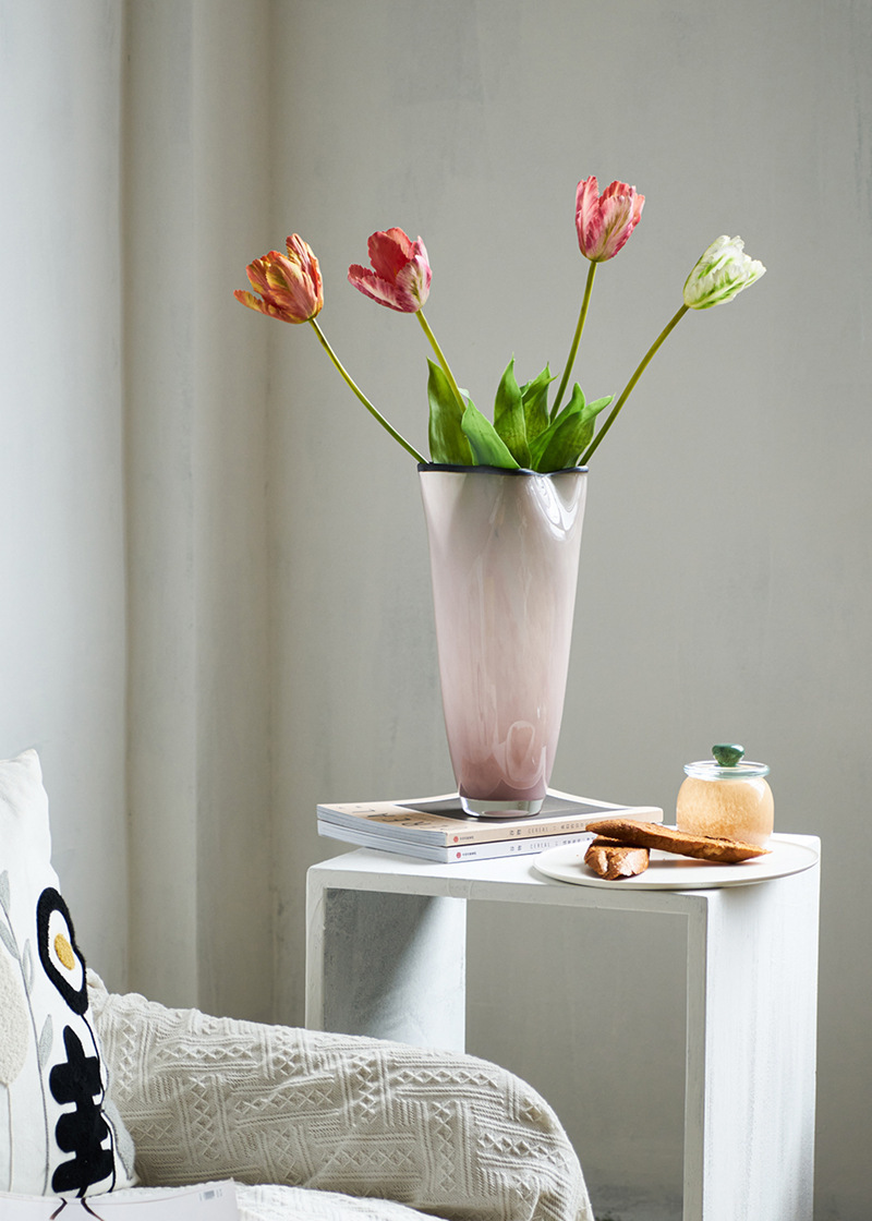 중간 고대 스타일 핑크 네 잎 클로버 수제 유리 꽃병 거실 데스크탑 홈 꽃 모델 룸 부드러운 꽃병스토어 가기