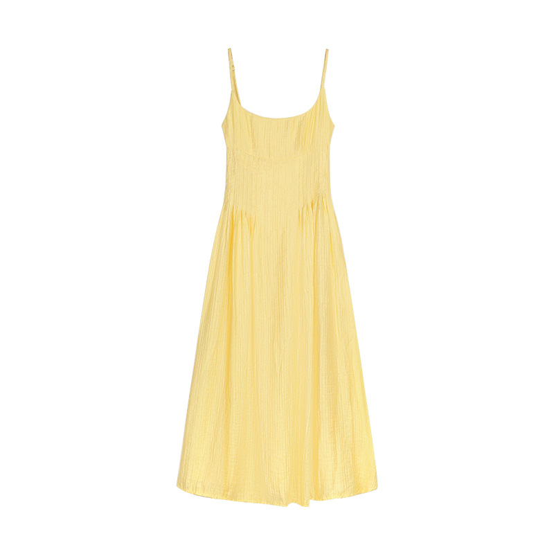 부드러운 스타일 노란색 원피스 여성 여름 해변 휴일 스타일 슬립 스커트 분위기 스커트 우아한 A 라인 긴 치마