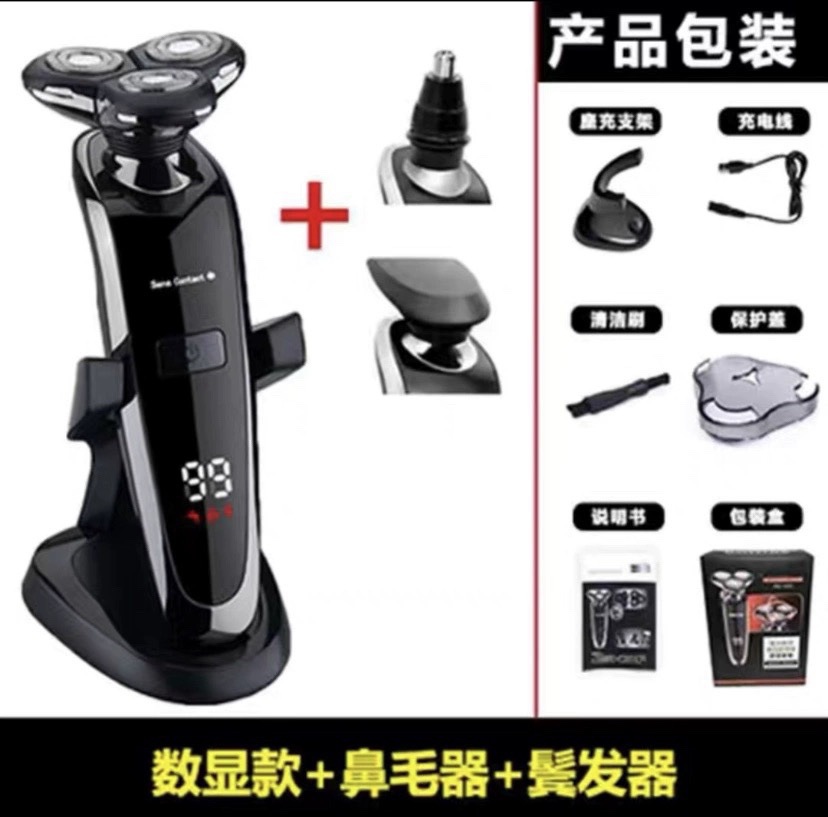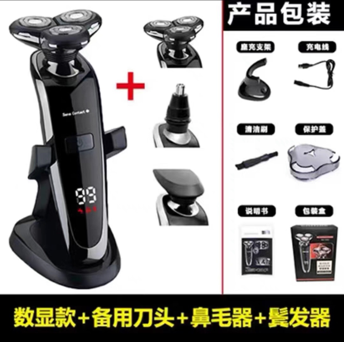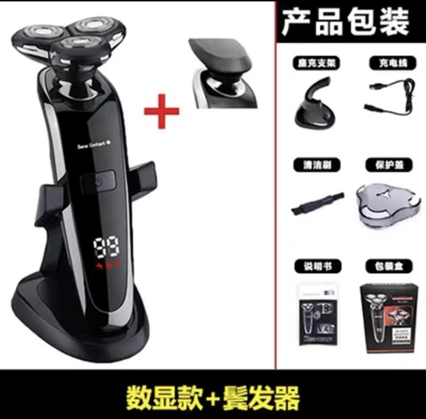 • 업그레이드된 디지털 디스플레이 + 예비 칼날 + 코털 제거기 + 구레나룻 제거기(충전기 포함)