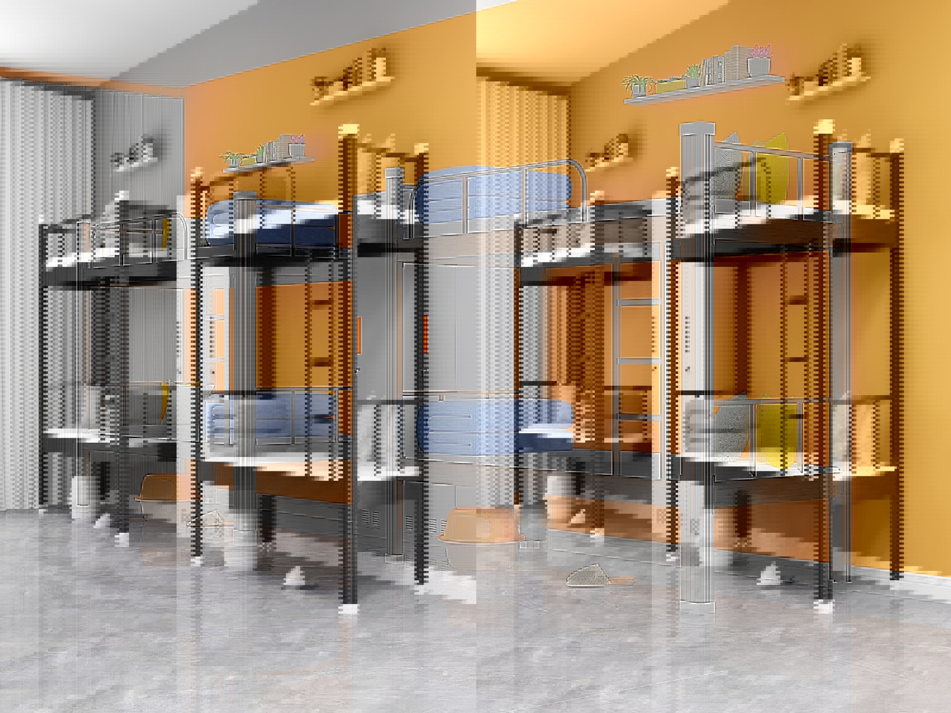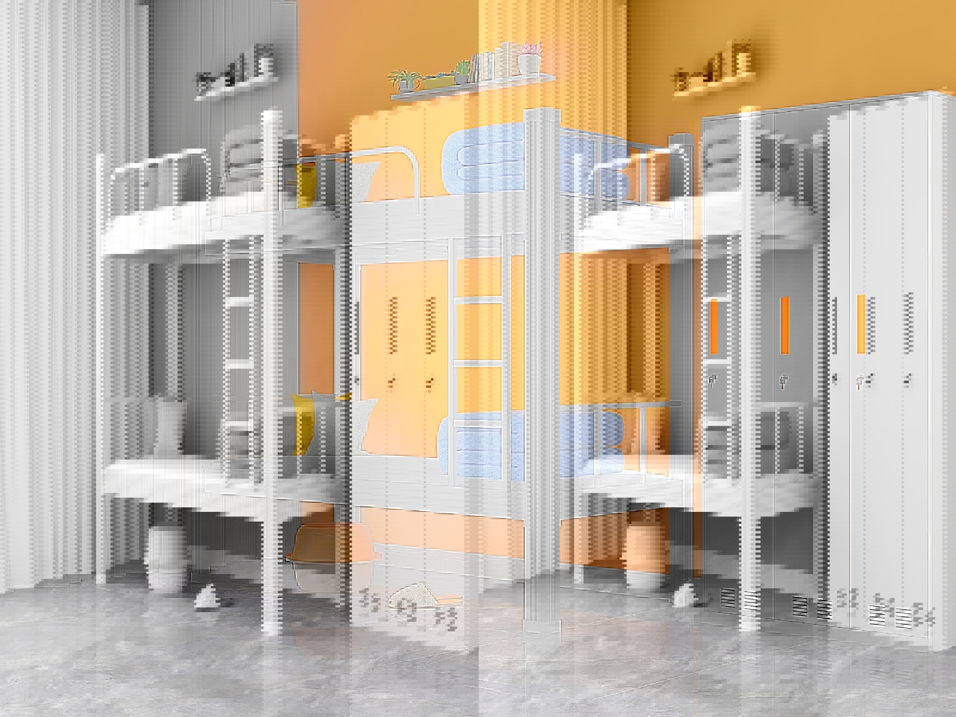 기숙사 이층, 더블 아이언 침대, 학생 침실 침대, 침대, 높고 낮은 침대
