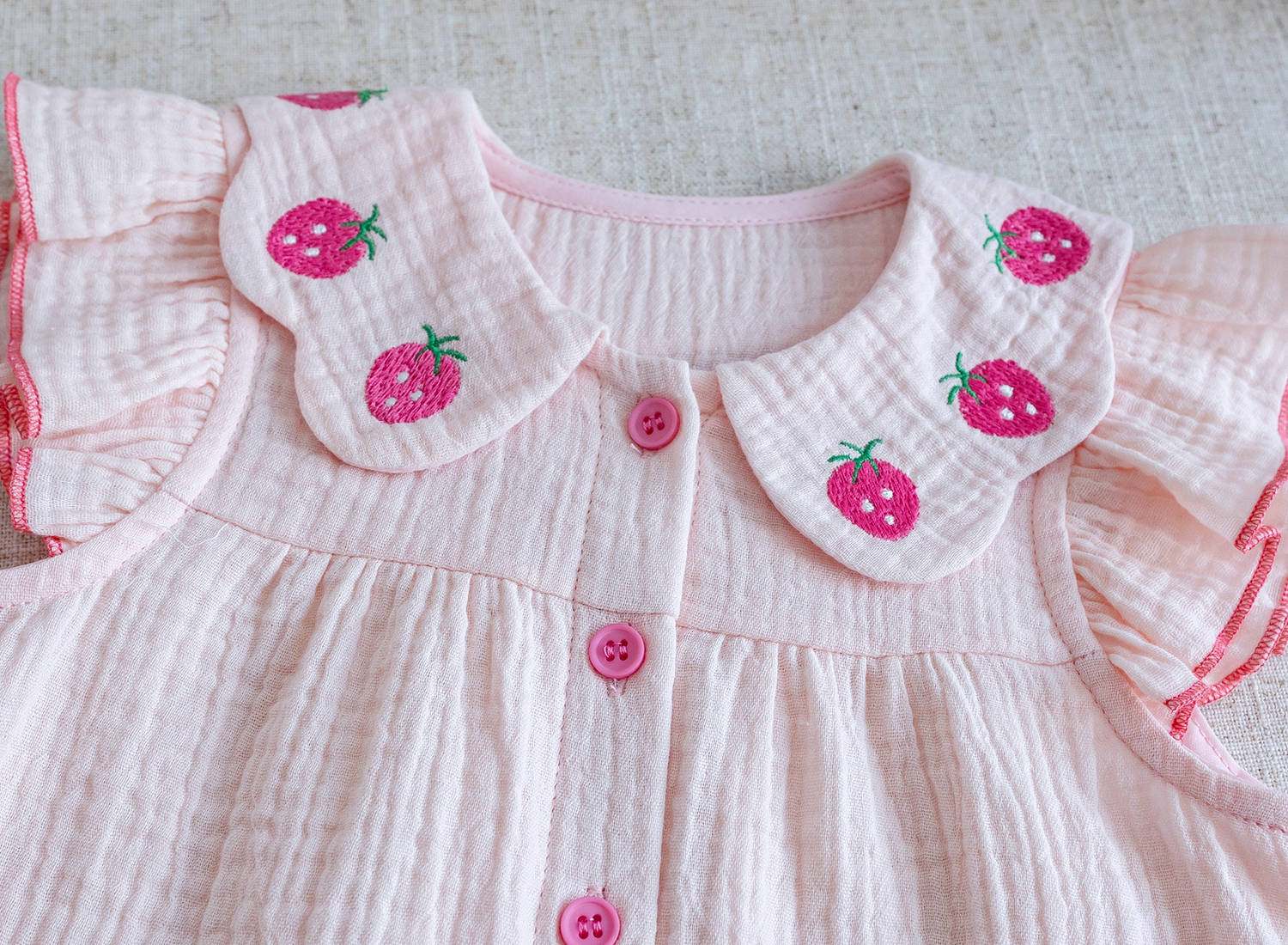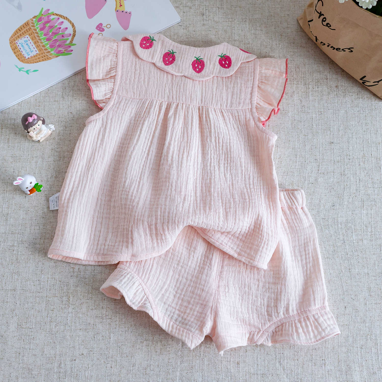여자 정장 2025 새로운 여름 어린이 한국어 스타일 달콤하고 귀여운 수 놓은 딸기 레이스 셔츠 반바지 정장스토어 가기