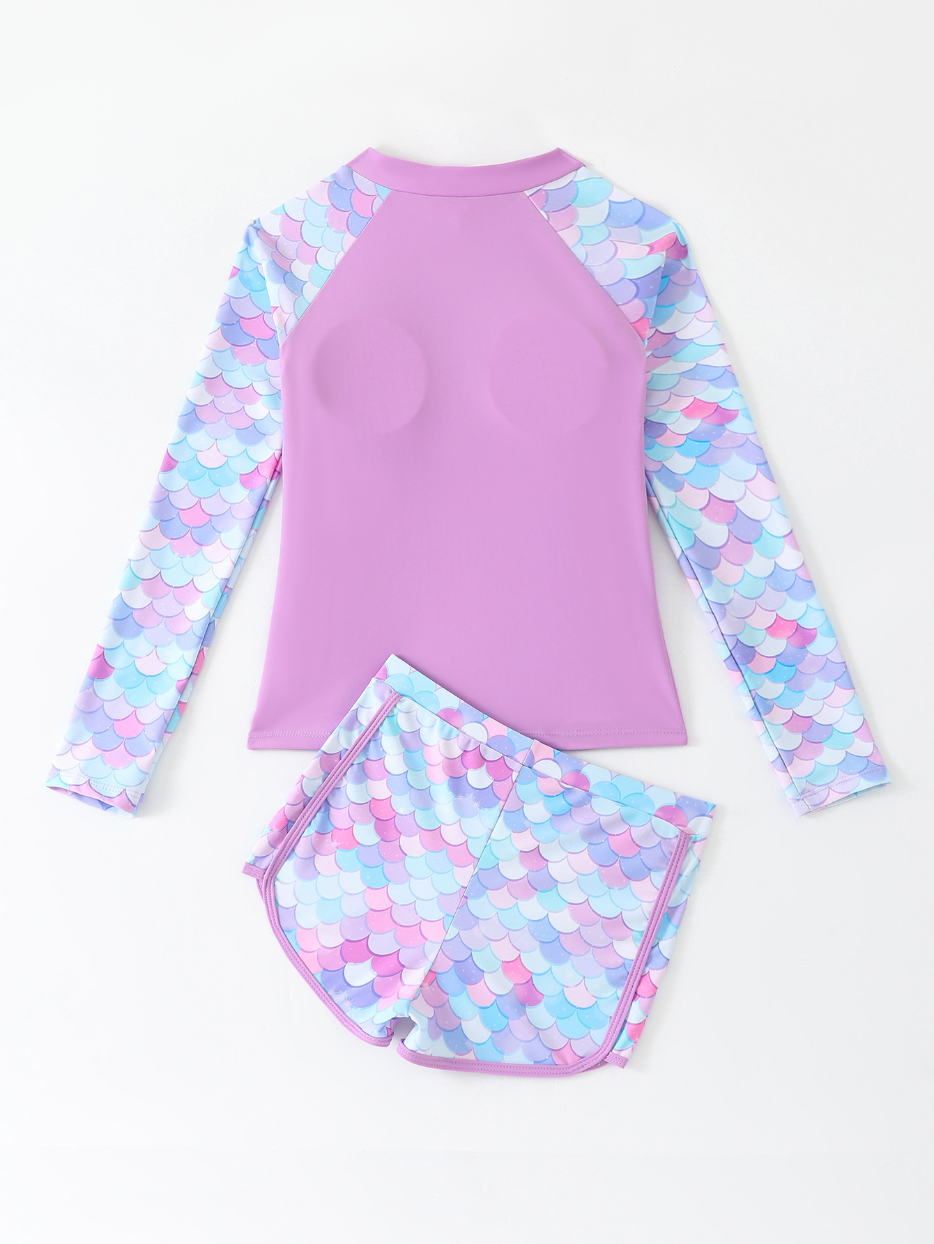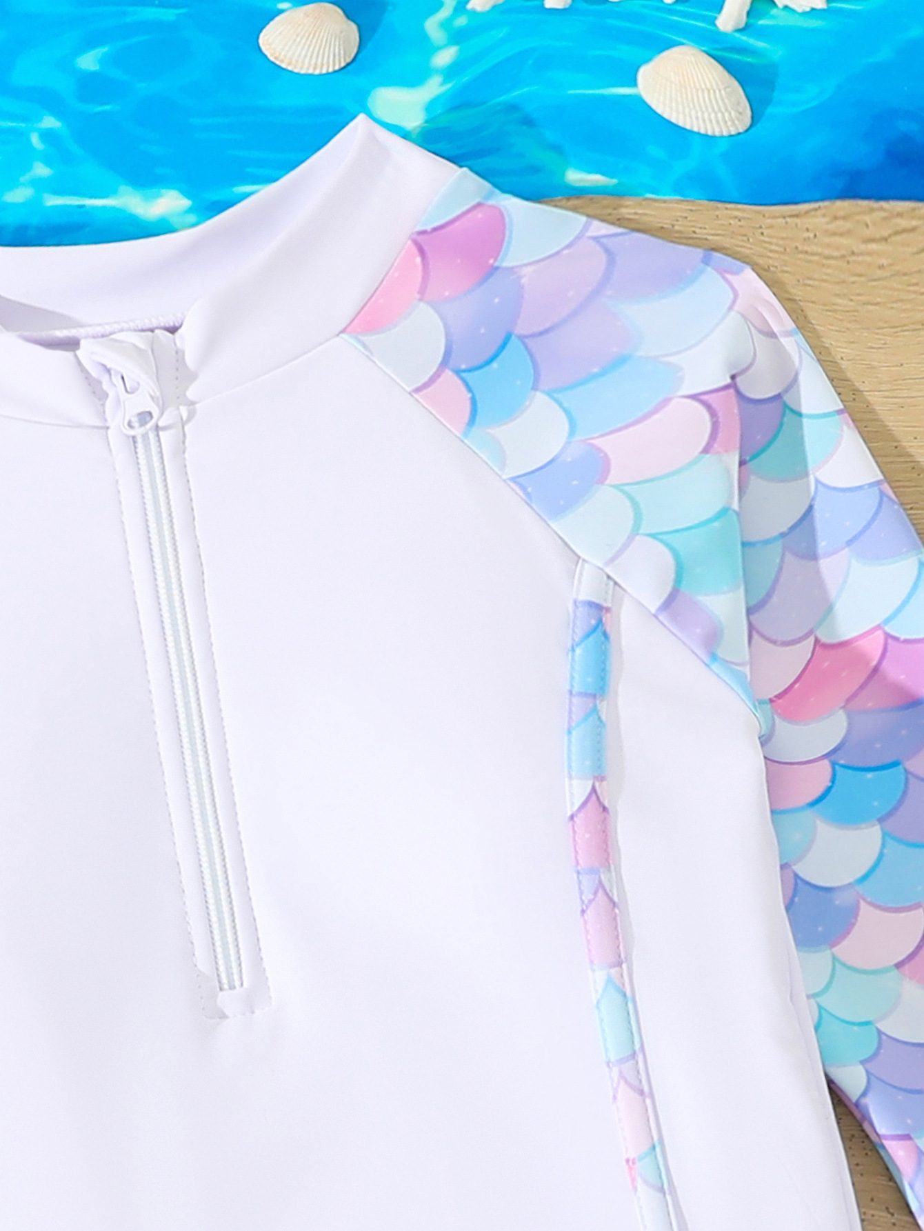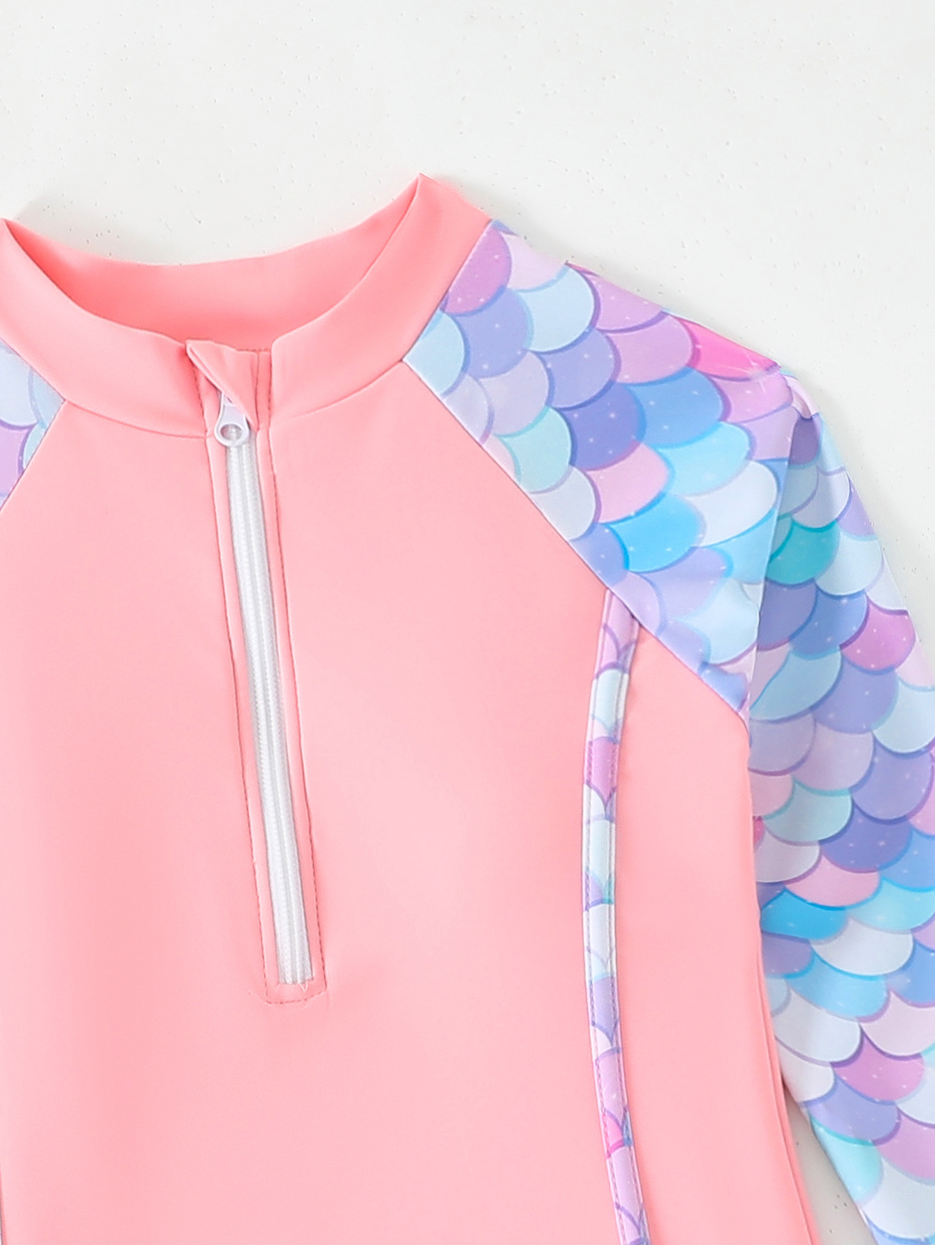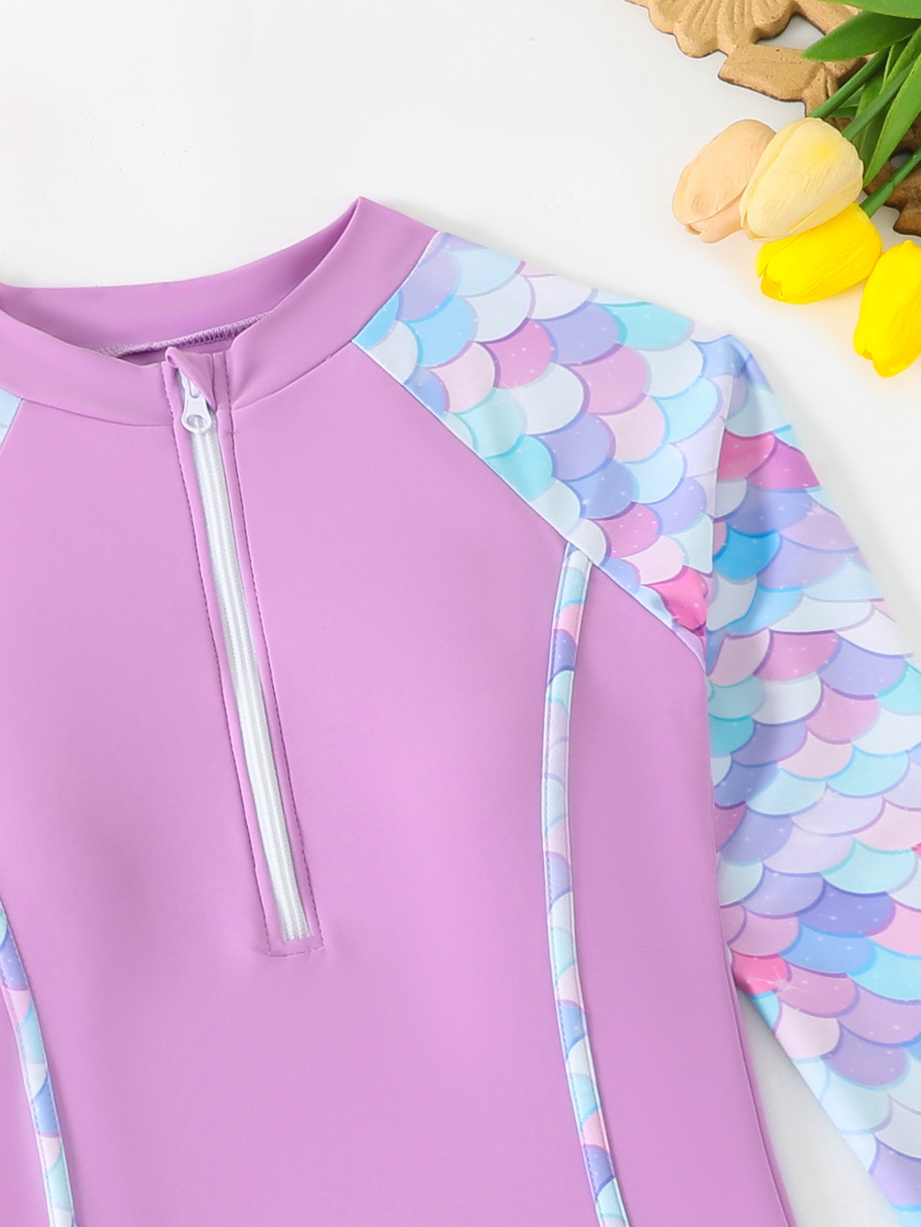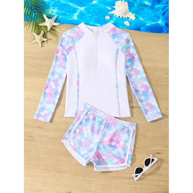 2025 유럽과 미국의 대외 무역 새로운 어린이 수영복 소녀 분할 복서 긴팔 지퍼 중대형 어린이 수영복 (가슴 패드 포함)