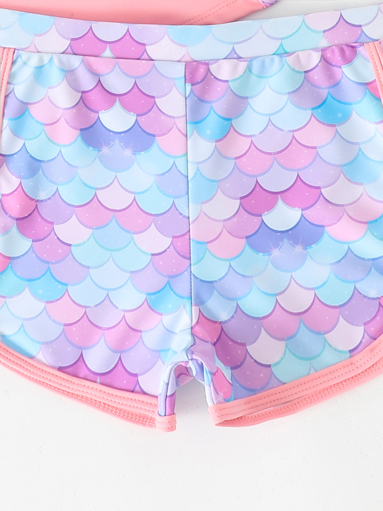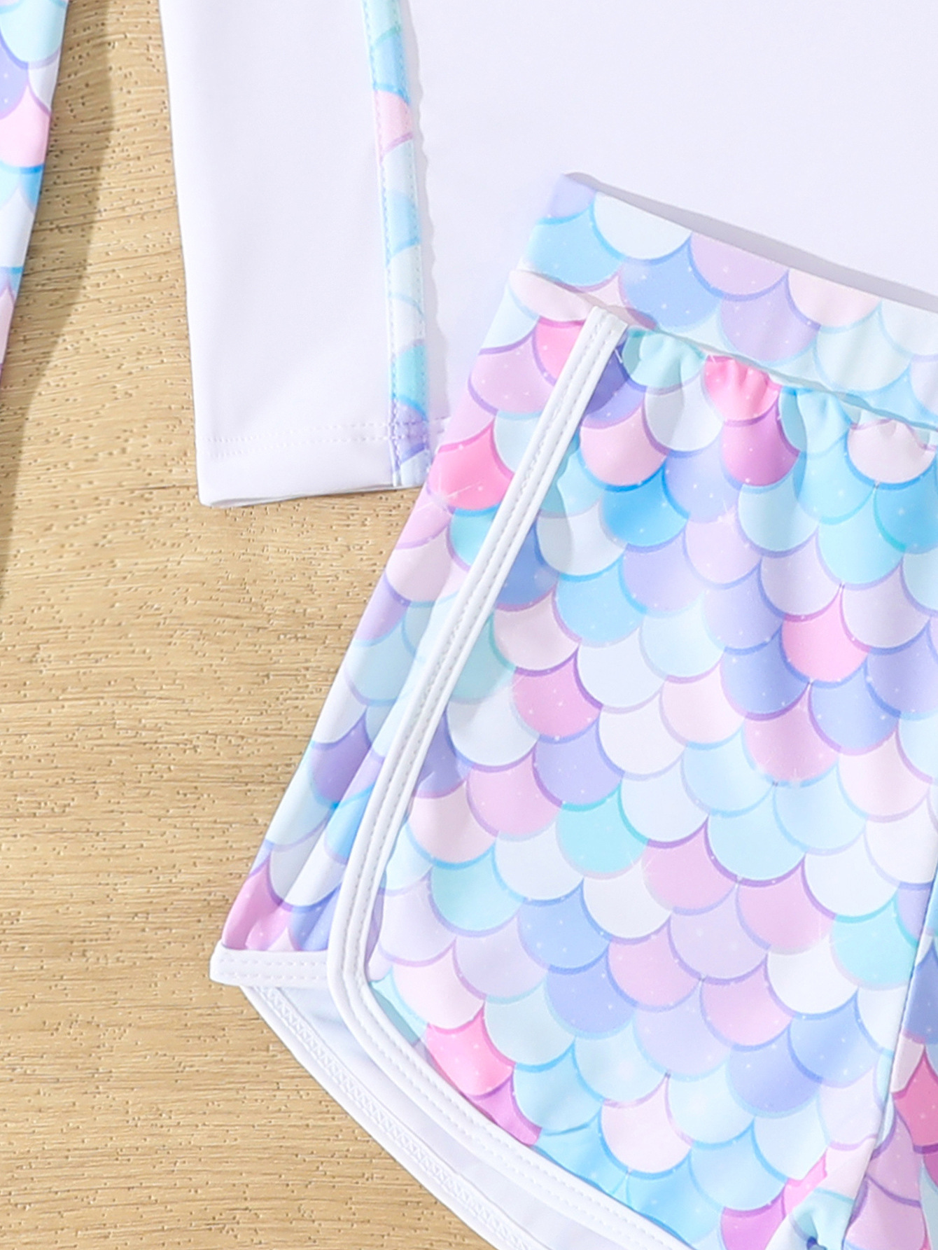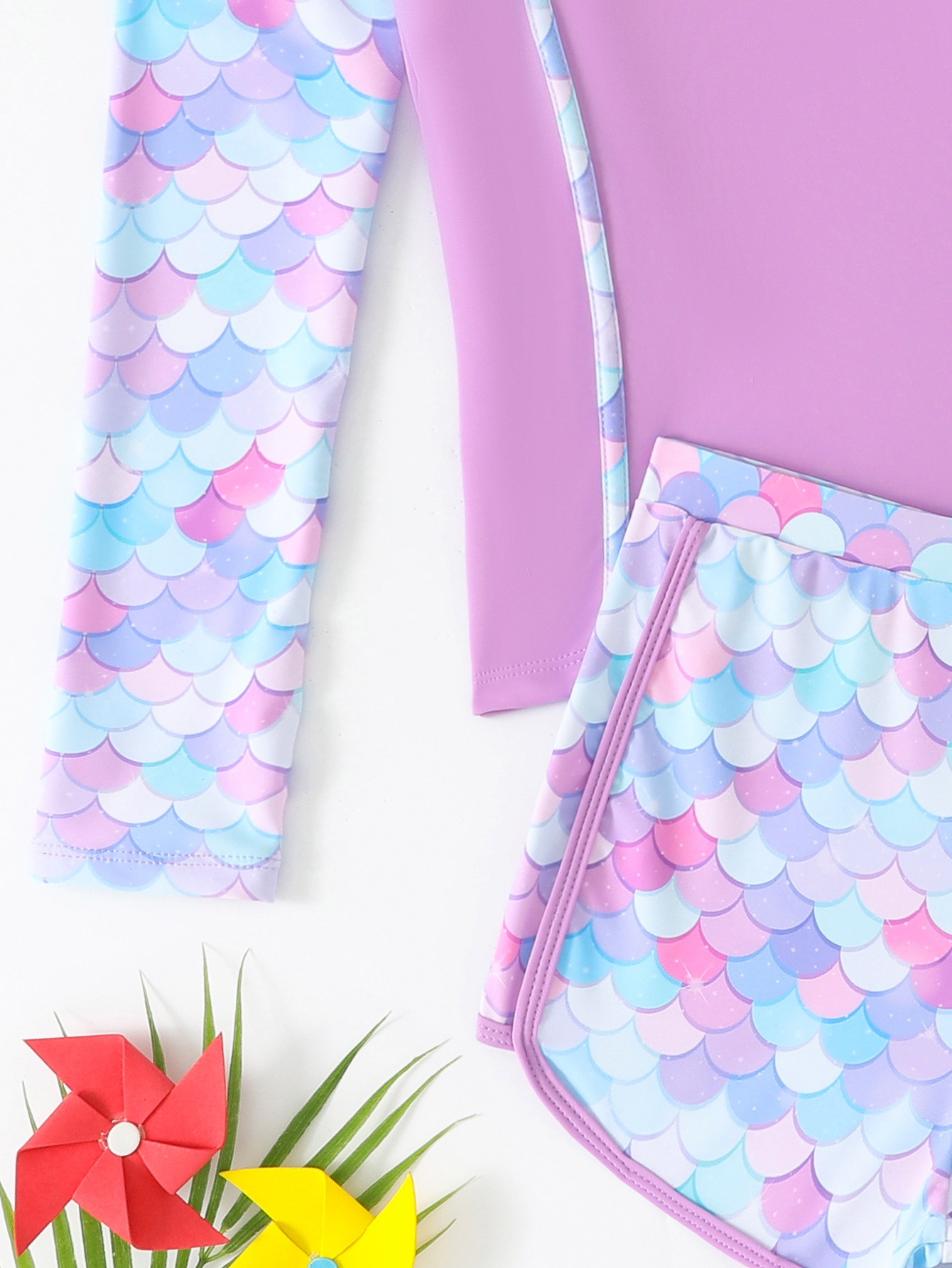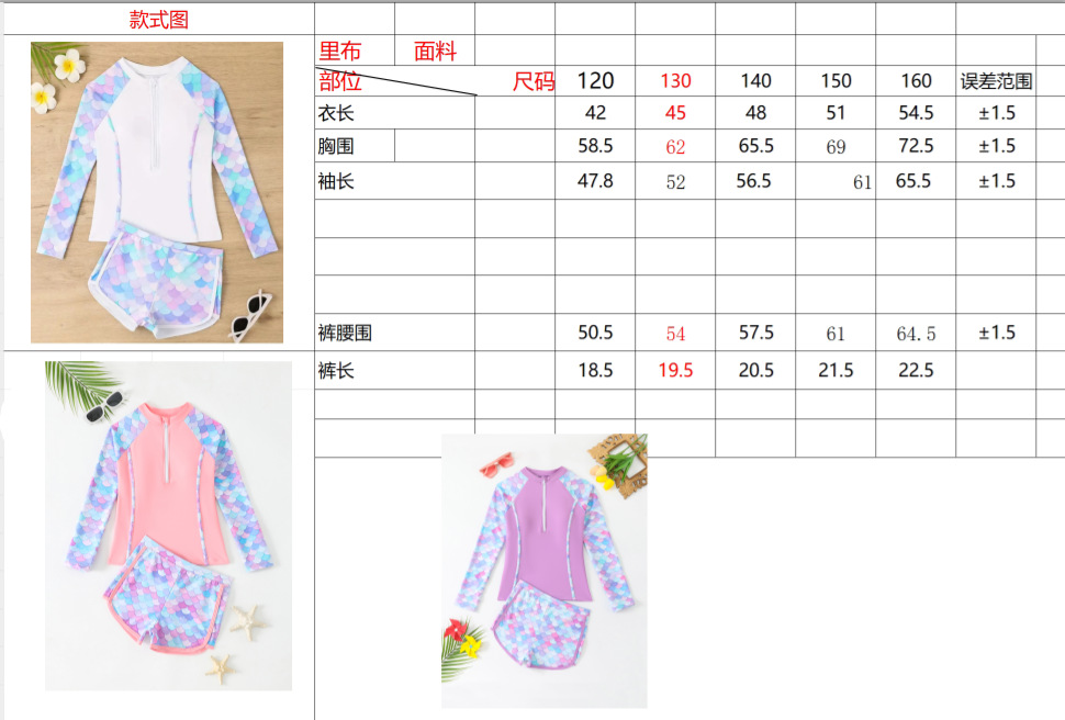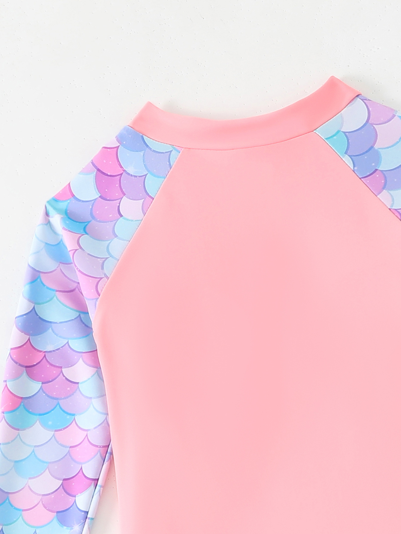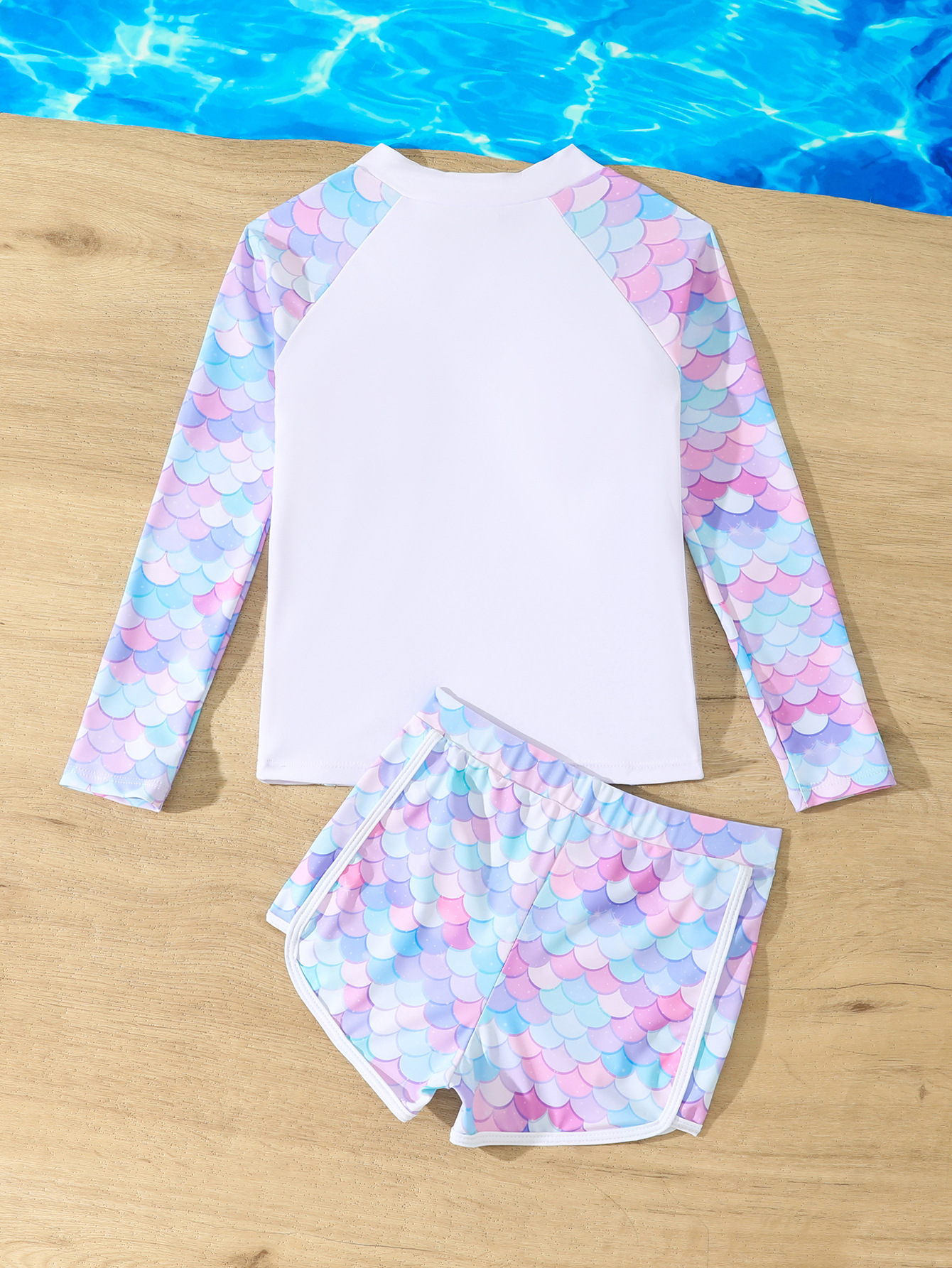 2025 유럽과 미국의 대외 무역 새로운 어린이 수영복 소녀 분할 복서 긴팔 지퍼 중대형 어린이 수영복 (가슴 패드 포함)