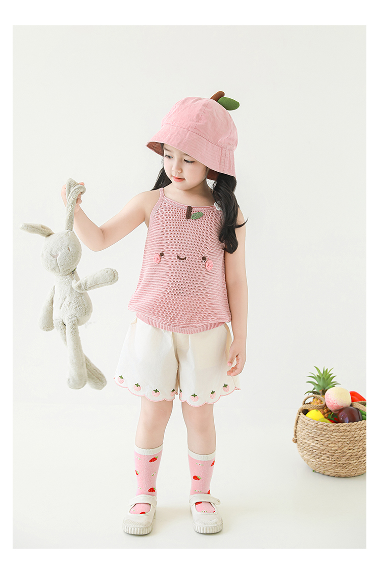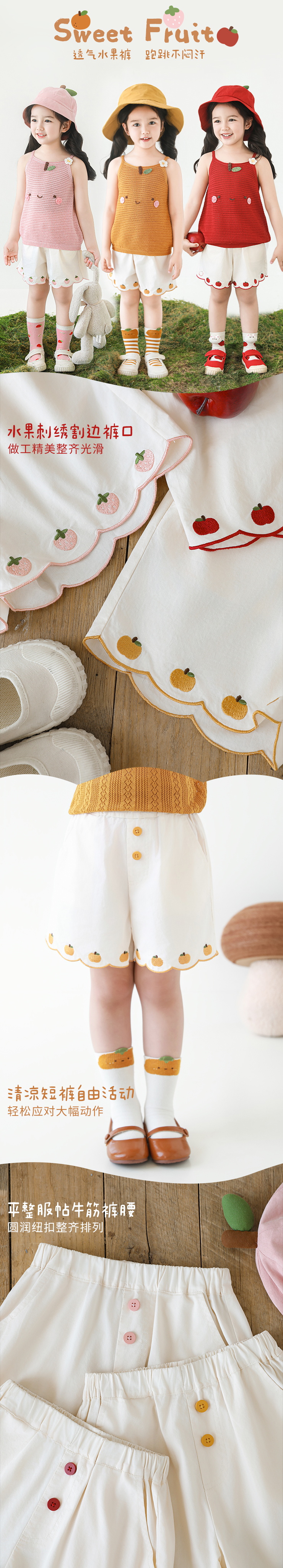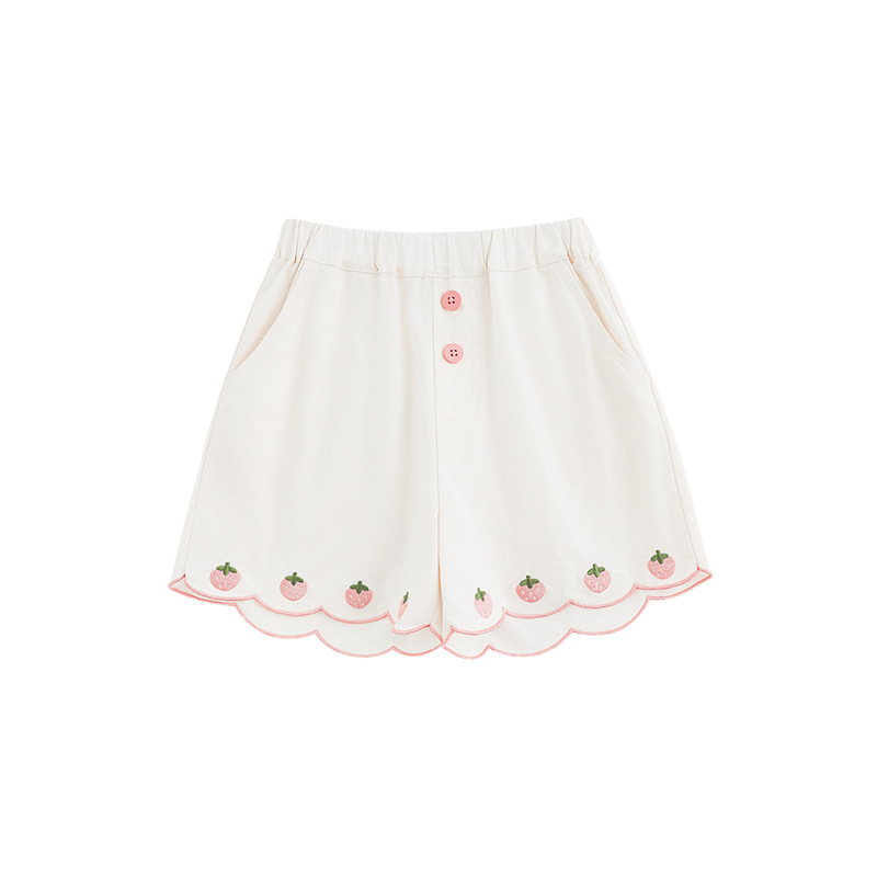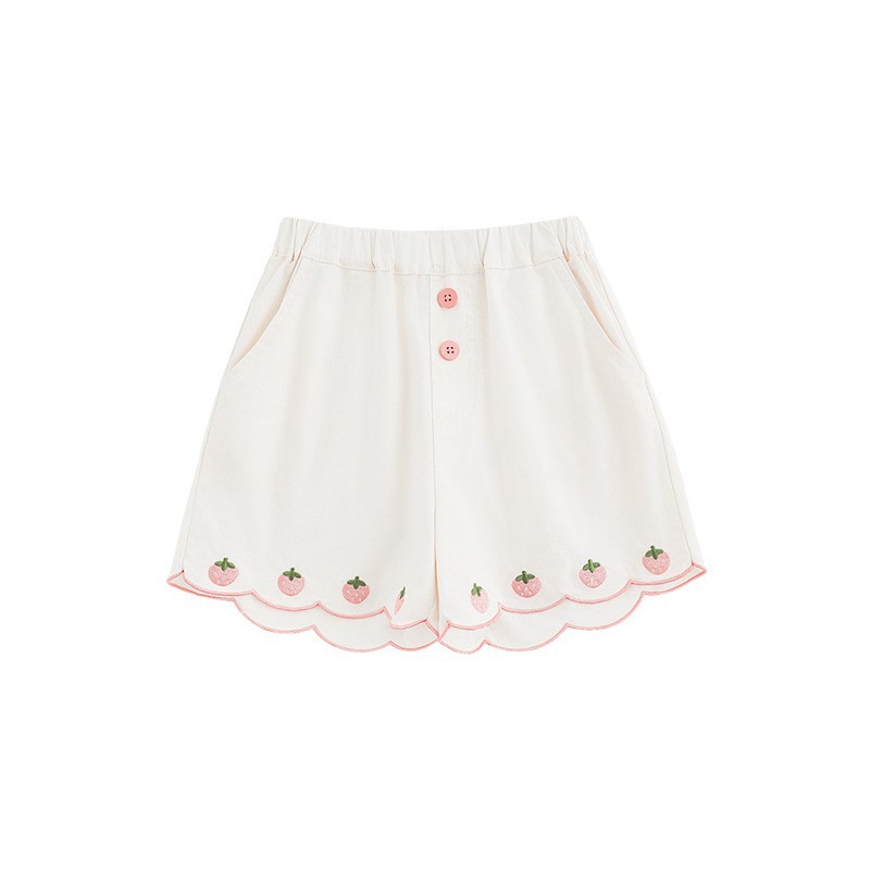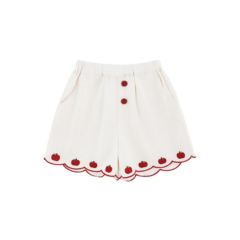 Wuri Boo 소녀의 과일 자수 컷 가장자리 멋진 반바지 여름 귀여운 재미 귀여운 통기성 느슨한 캐주얼 바지