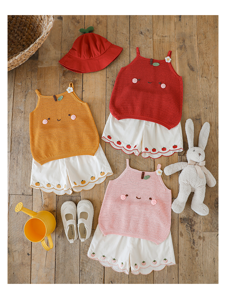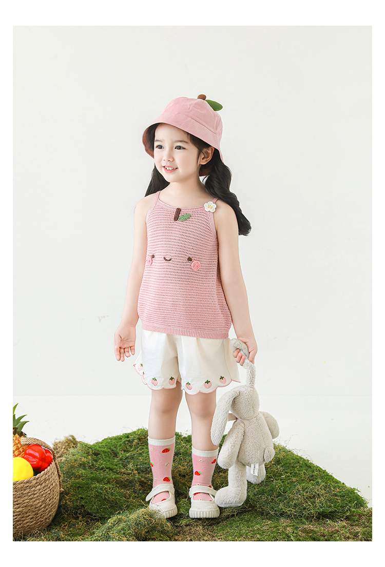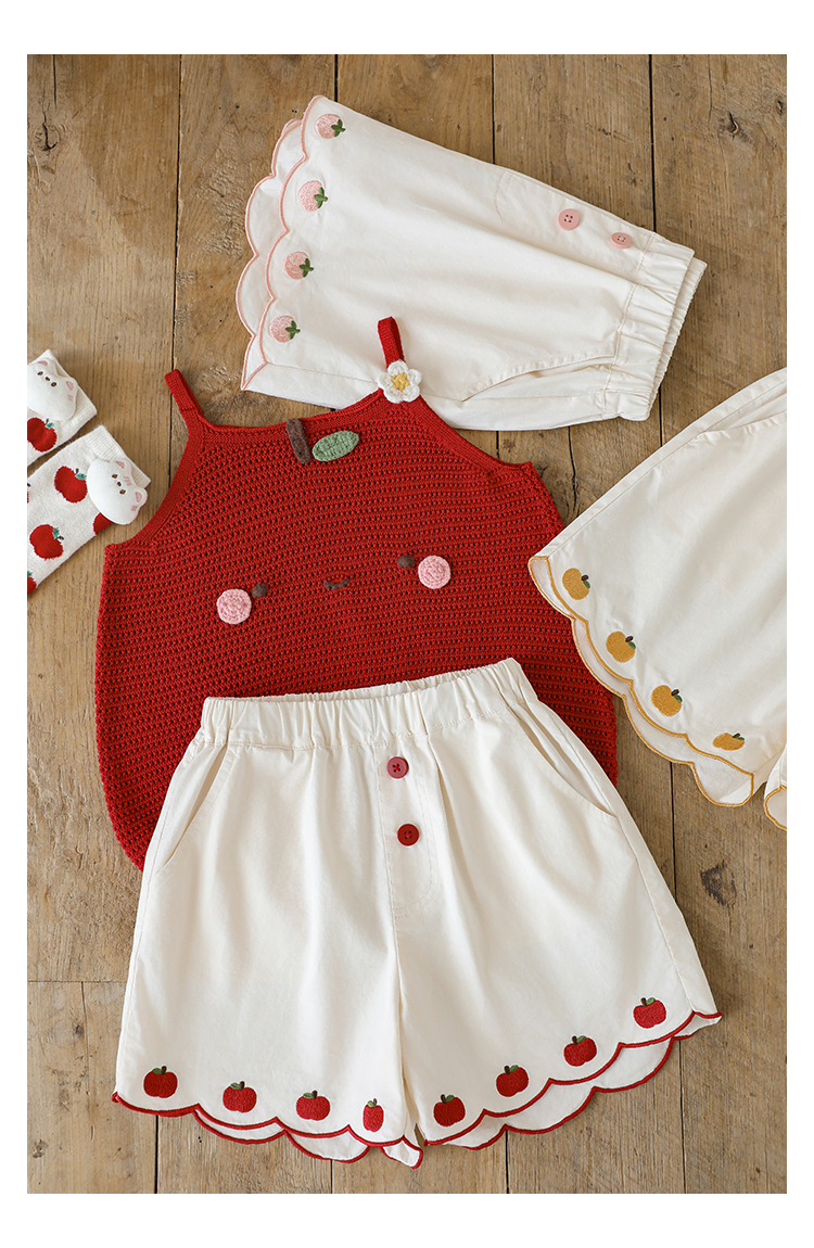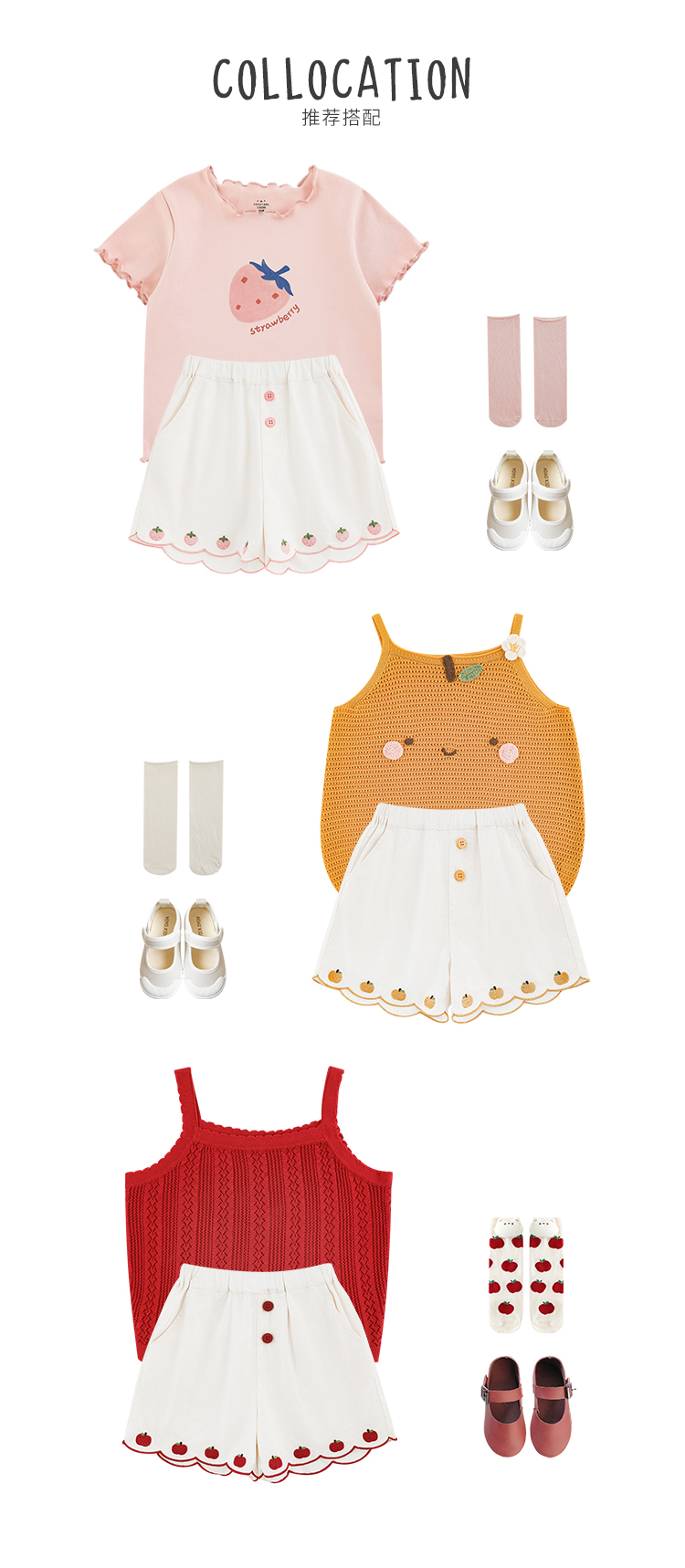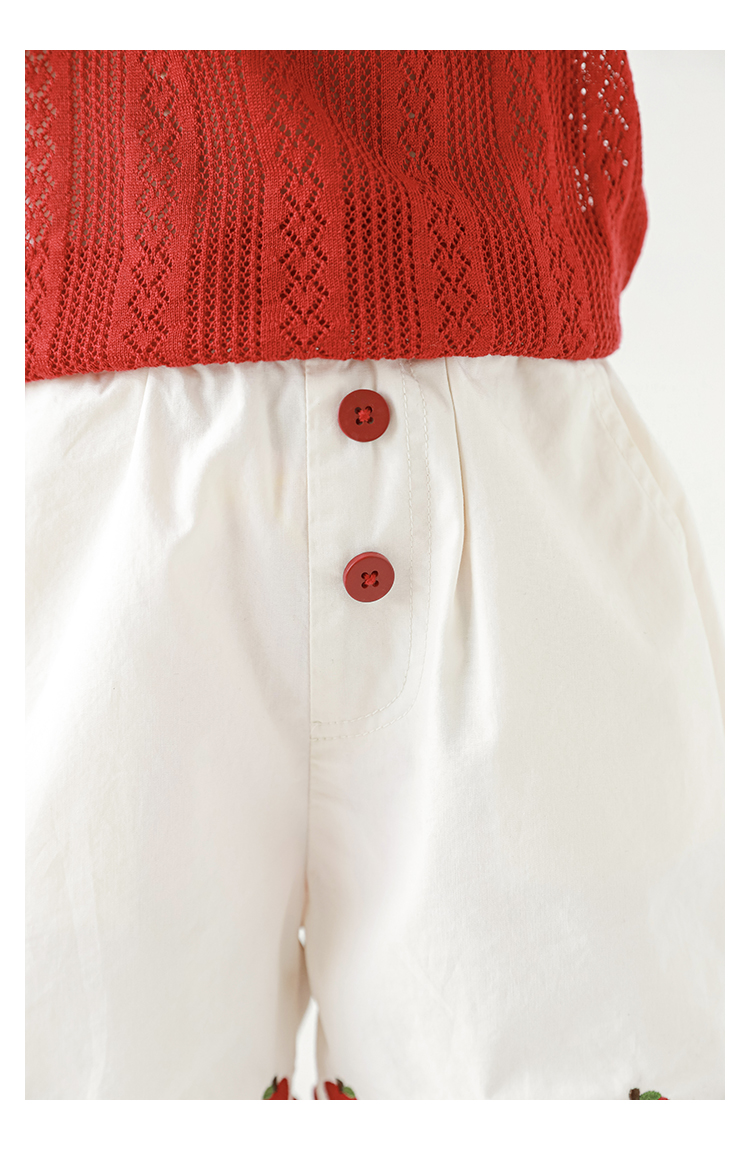 Wuri Boo 소녀의 과일 자수 컷 가장자리 멋진 반바지 여름 귀여운 재미 귀여운 통기성 느슨한 캐주얼 바지