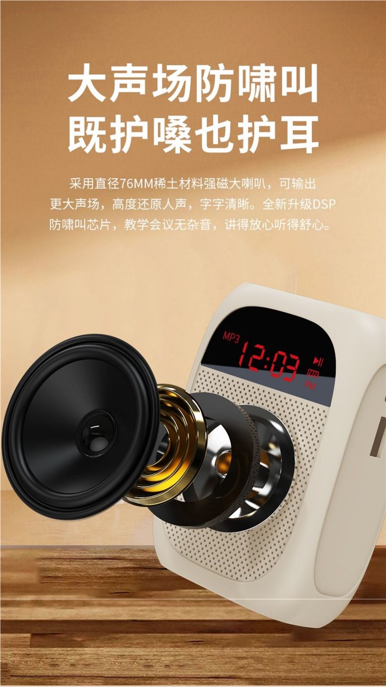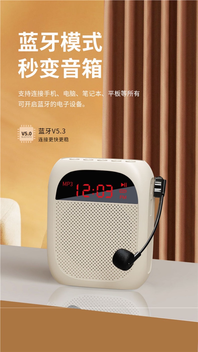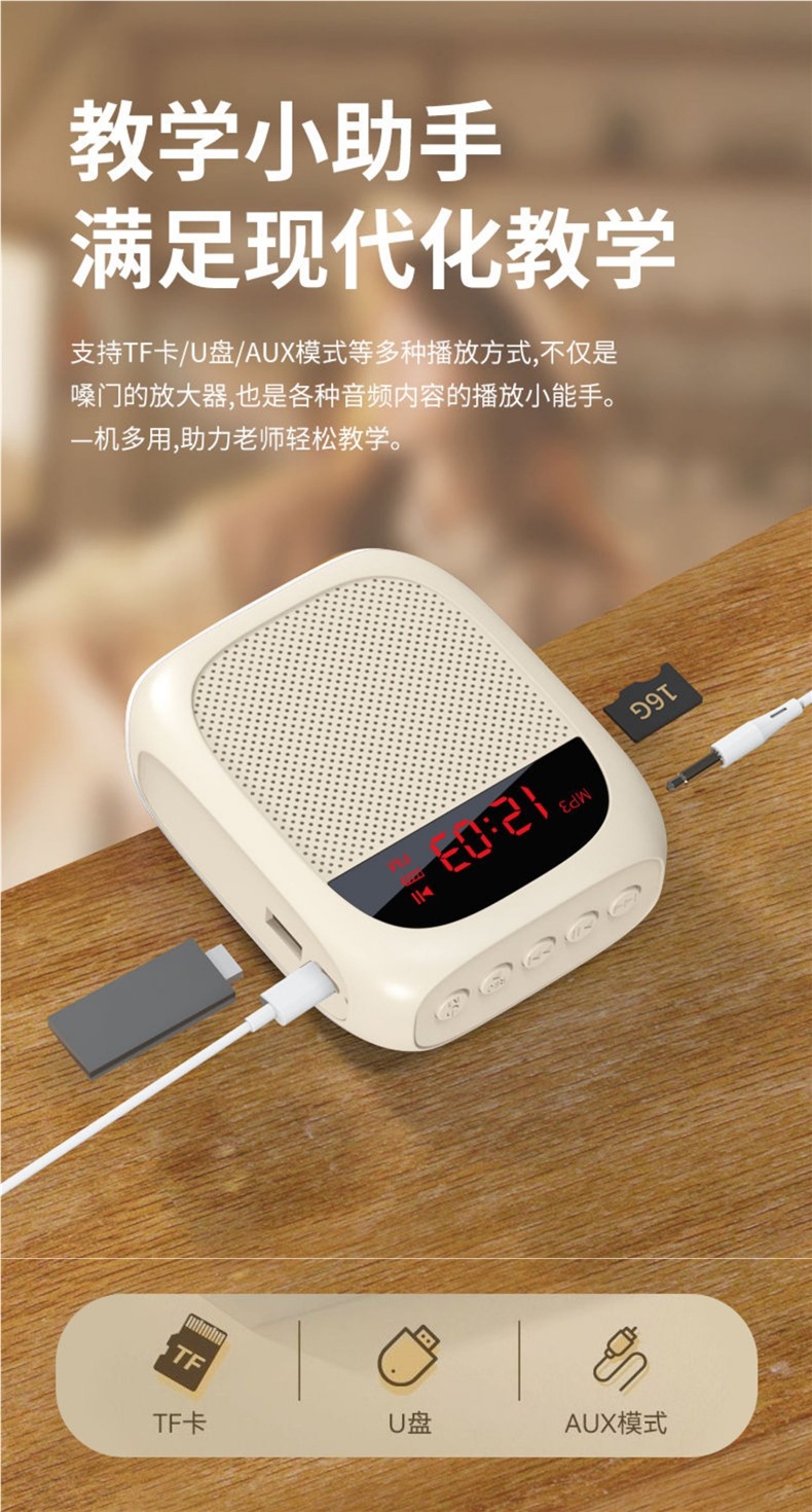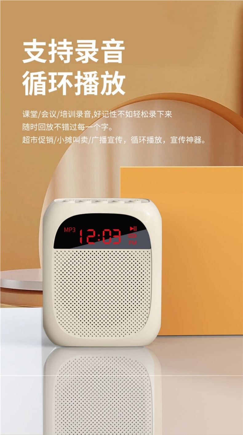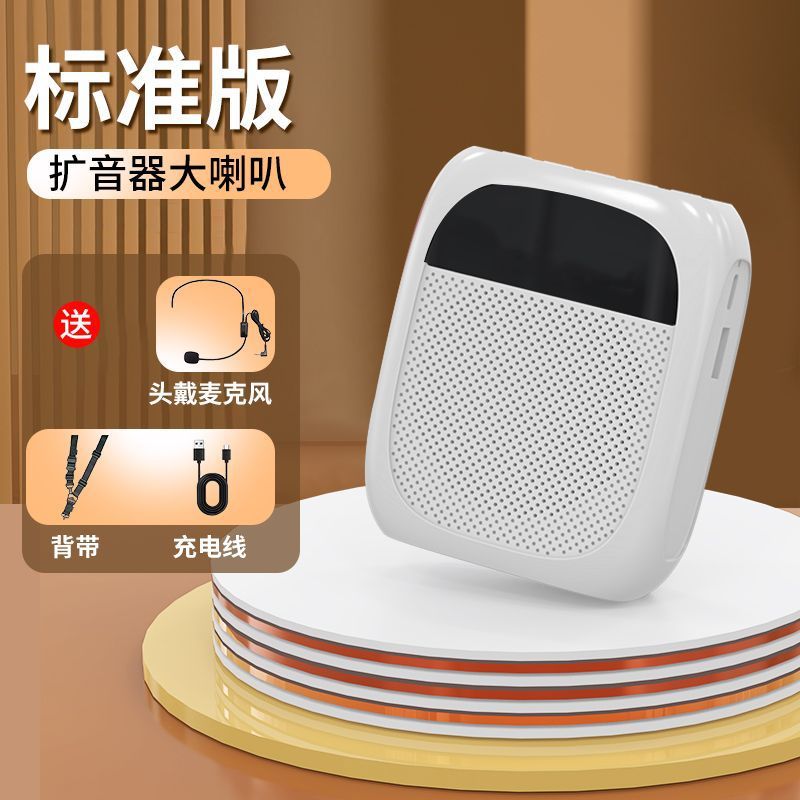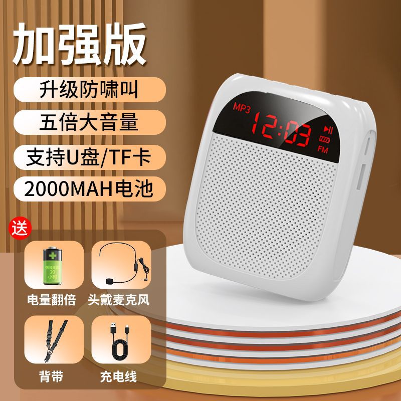 • [화면 디스플레이 버전 - 흰색] U 디스크 TF 카드 지원 + 강력한 자기 스피커 + 5배 더 큰 볼륨 + 헤드 마이크 + 벨트