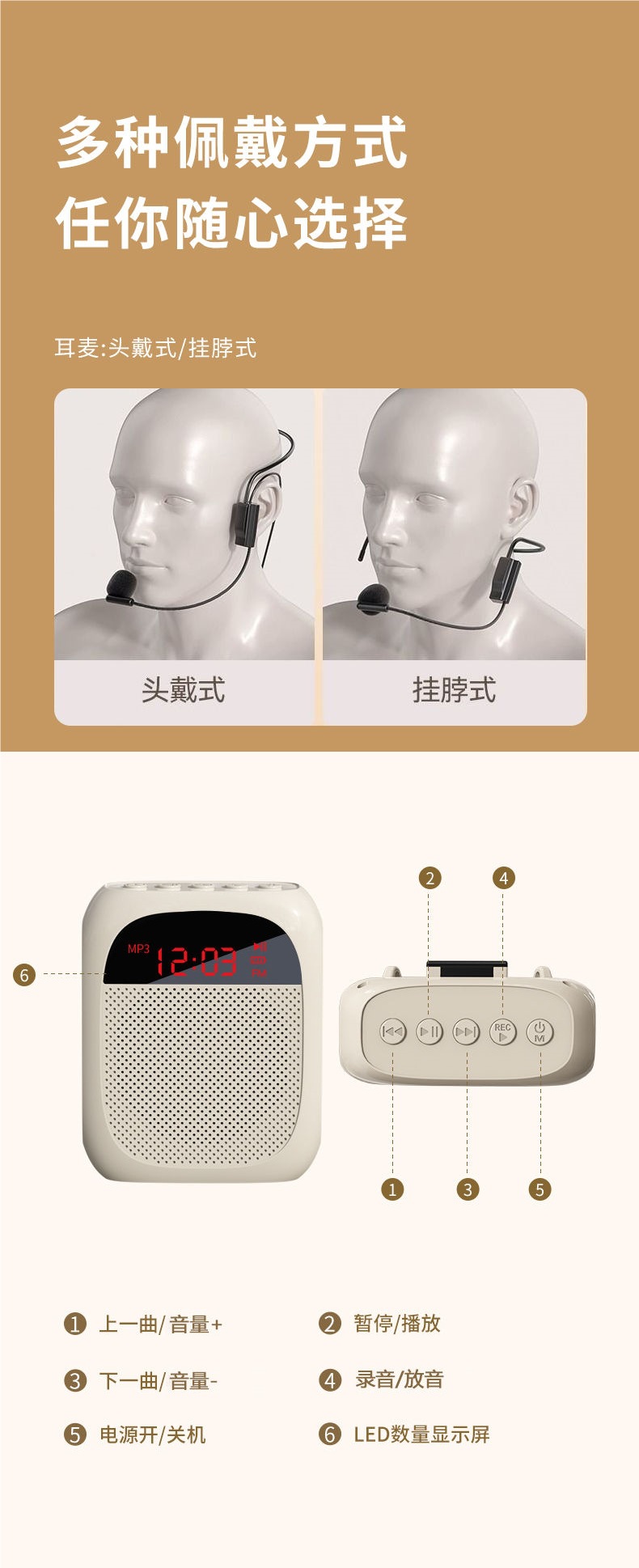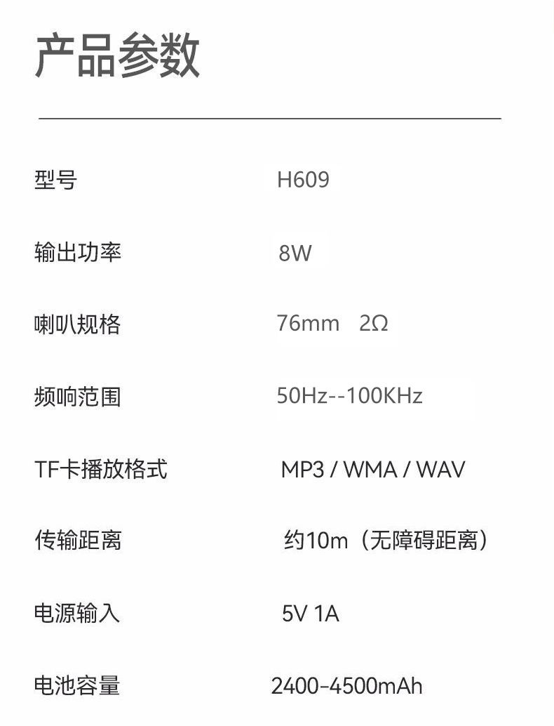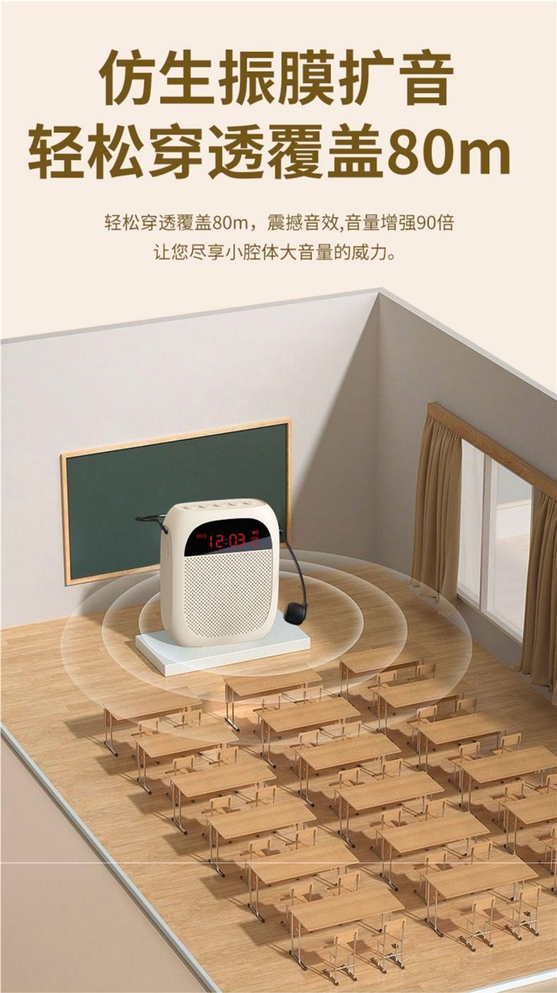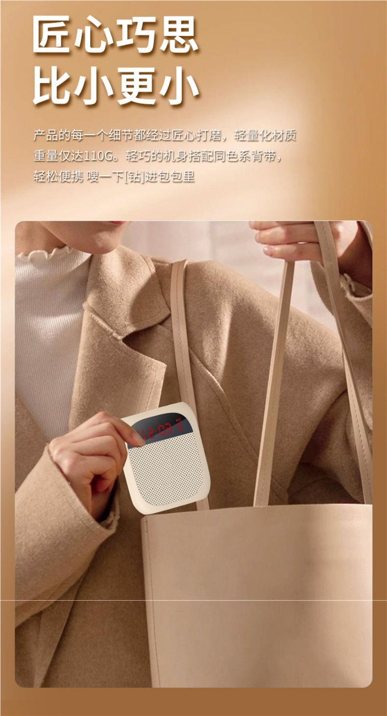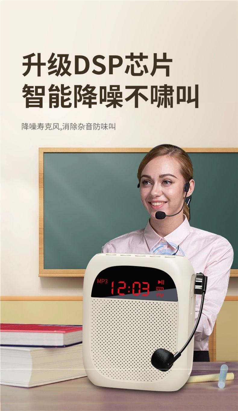 • [화면 디스플레이 버전 - 흰색] U 디스크 TF 카드 지원 + 강력한 자기 스피커 + 5배 더 큰 볼륨 + 헤드 마이크 + 벨트