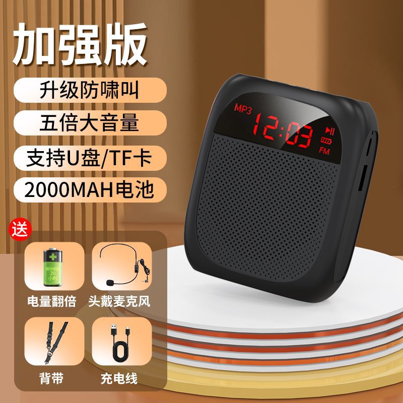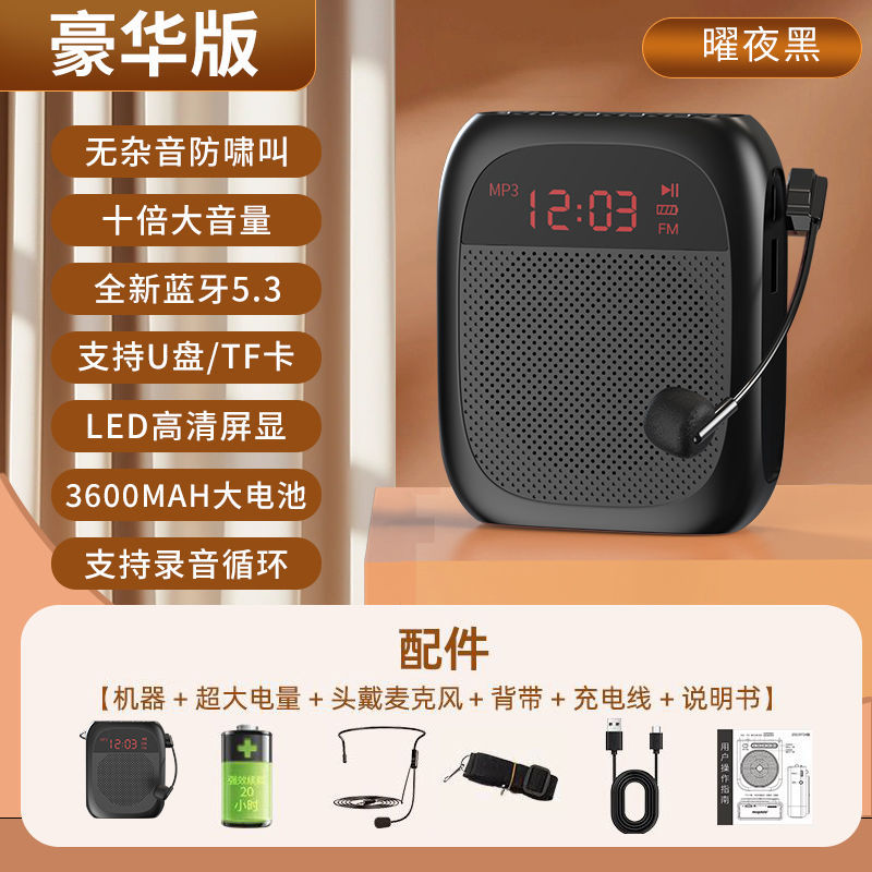 • [화면 디스플레이 버전 - 검정색] U 디스크 TF 카드 지원 + 강력한 자기 스피커 + 5배 더 큰 볼륨 + 헤드 마이크 + 벨트