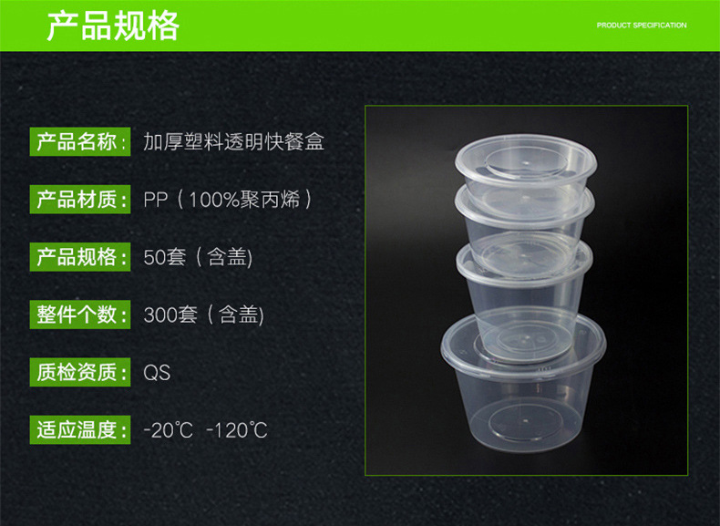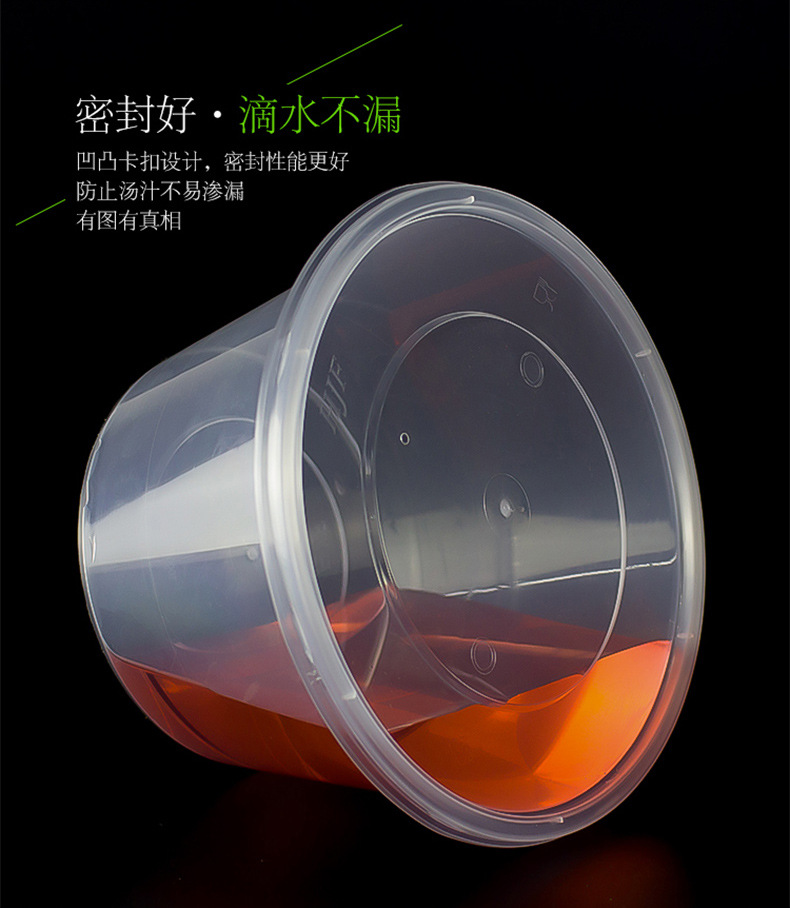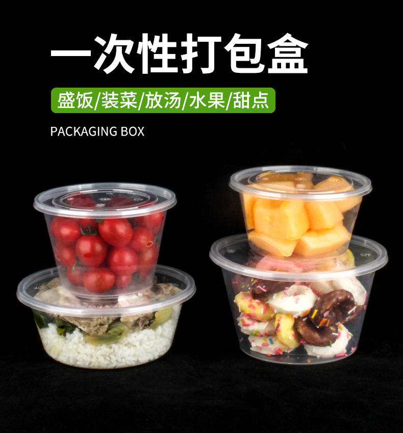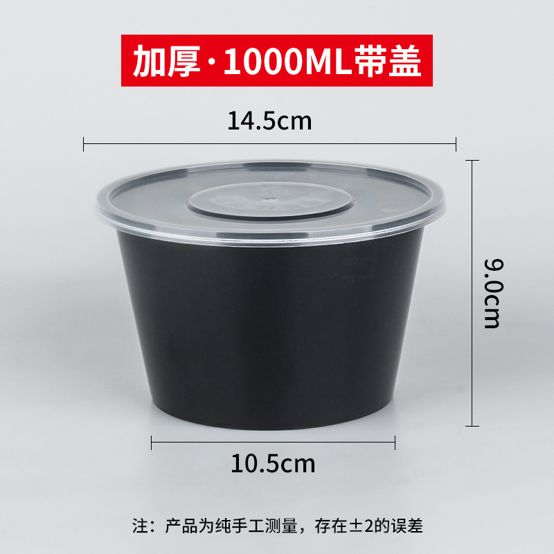 圆形1000ML一次性餐盒塑料打包加厚透明外卖饭盒带盖快餐便当汤碗
