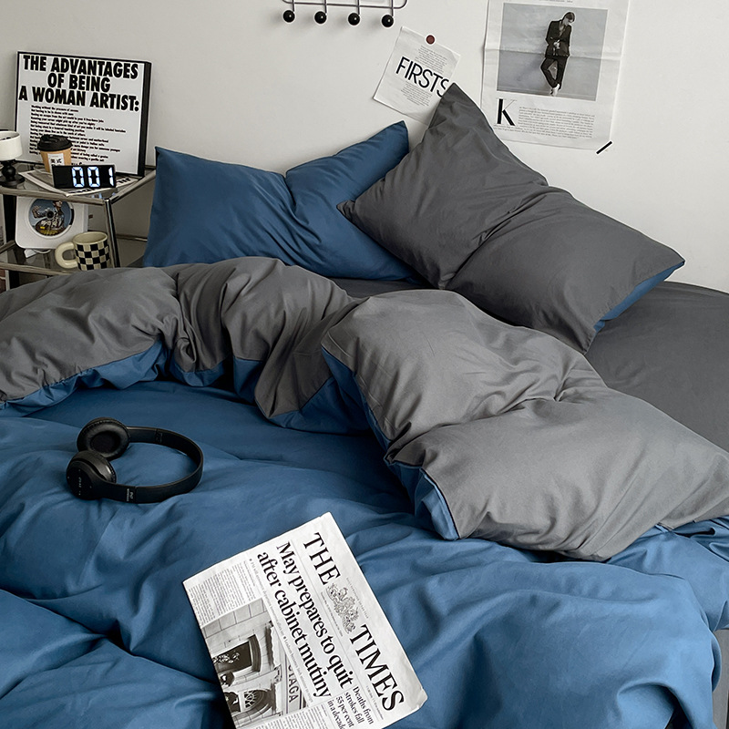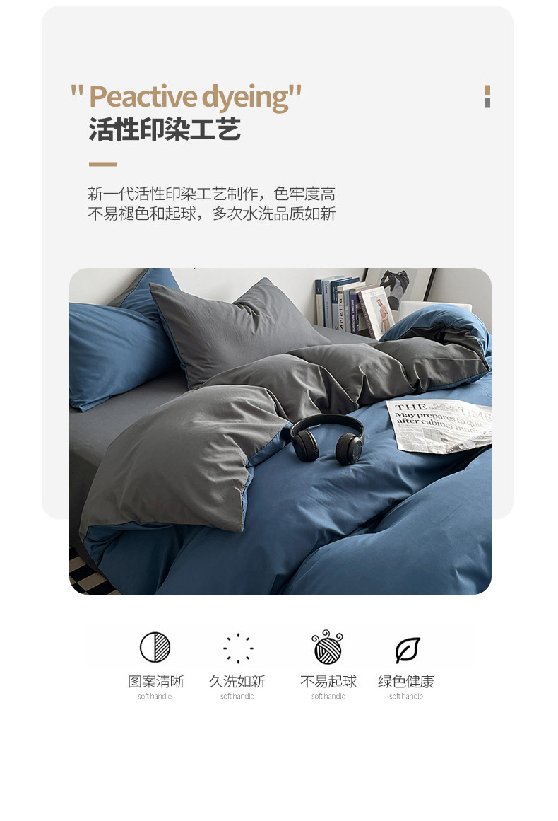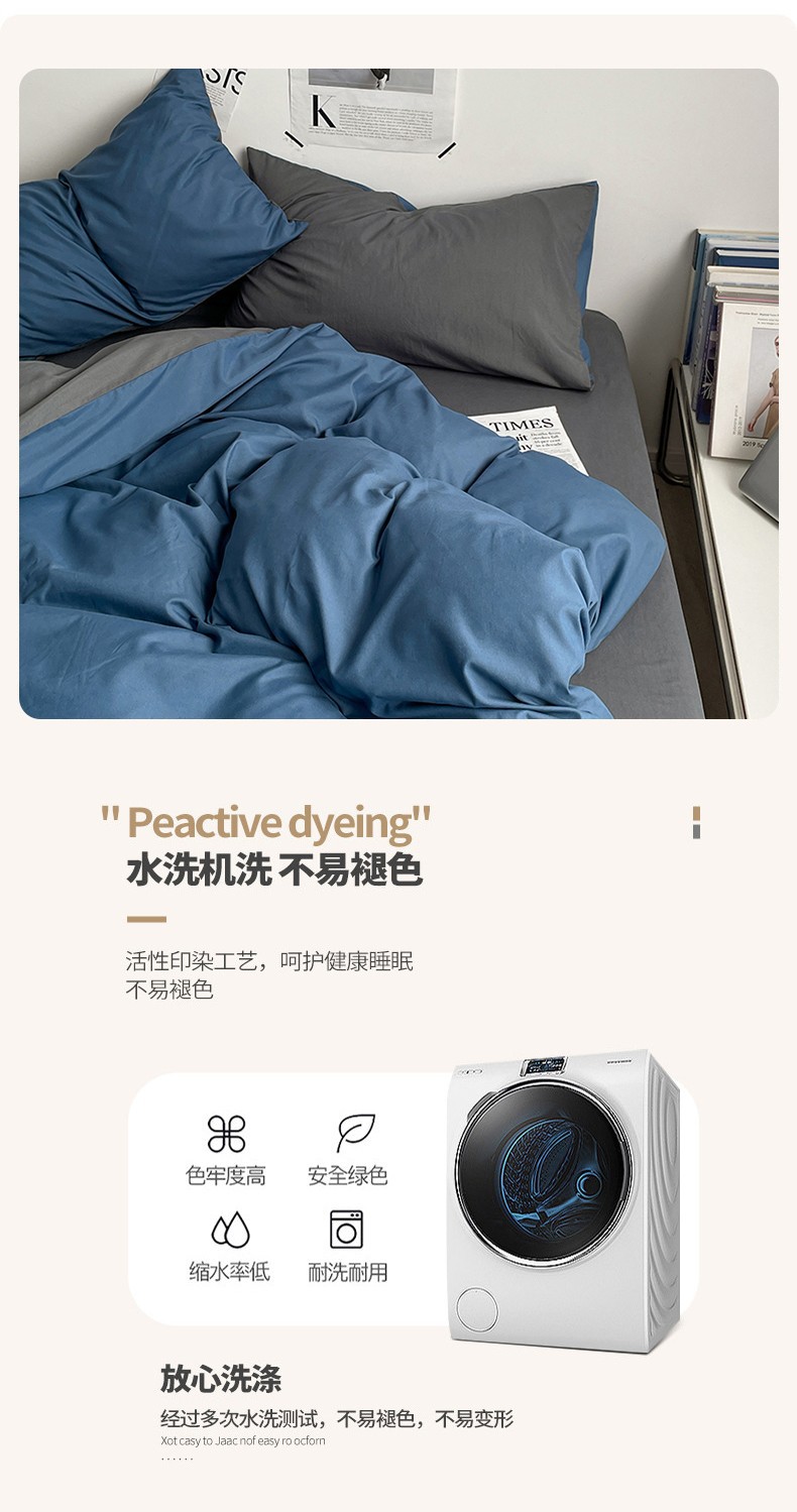 일본 스타일 Ins 피부 친화적 인 단색 슈퍼 소프트 세척 코튼 4 피스 침대 시트 퀼트 커버 학생 기숙사 3 피스 침대 커버