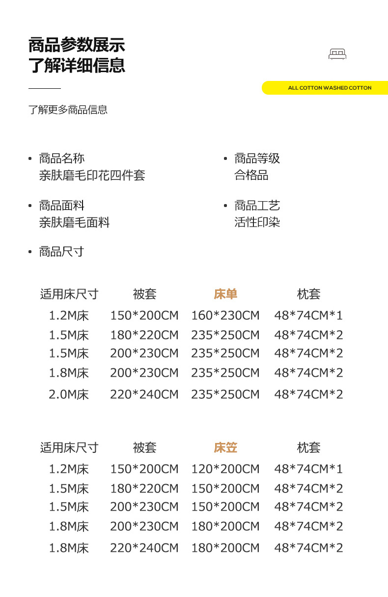 • 1.5m 침대 시트 4장 세트(이불커버 200x230cm)