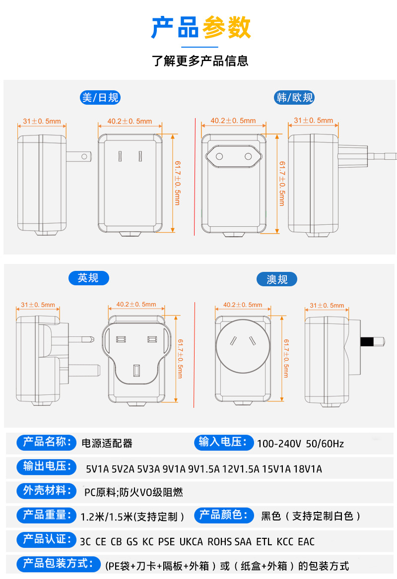 중국 CCC 인증 9V2A 전원 어댑터 ETL 미국 및 한국 KC 일본 PSE 인증 벽면 5V3A 어댑터스토어 가기