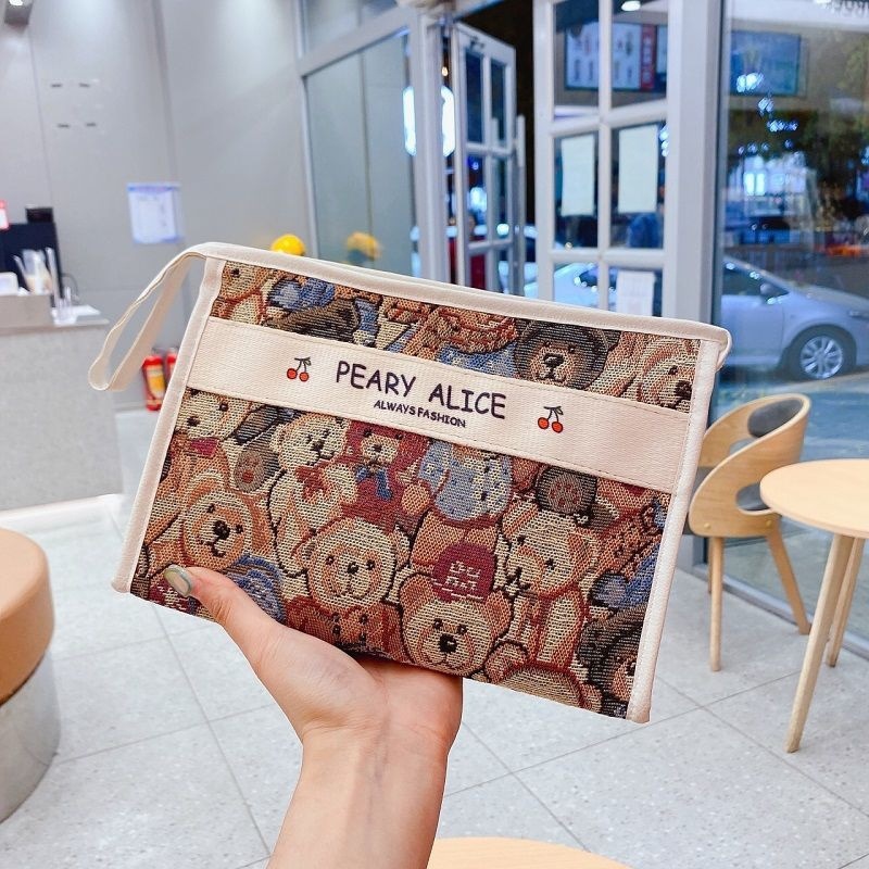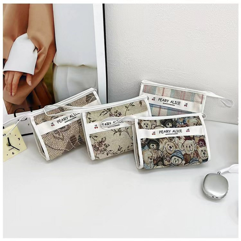 2024 새로운 스타일 화장품 가방 휴대용 아웃 오브 더 웨이 인스 타 그램 스토리지 백 여성 올 매치 자수 곰 동전 지갑스토어 가기