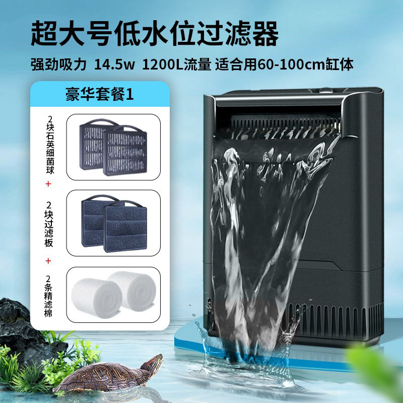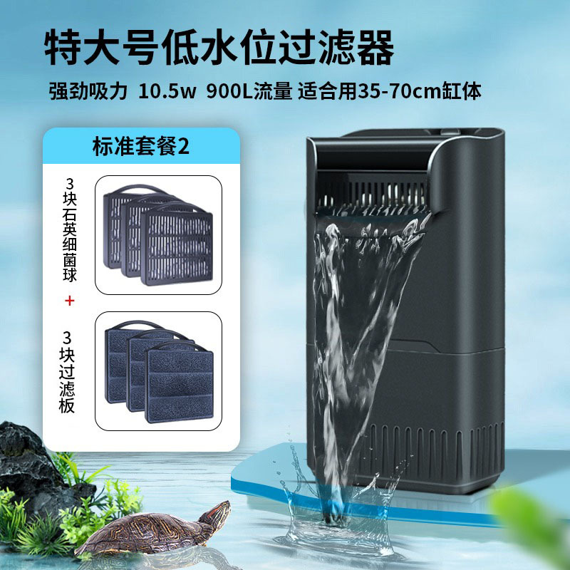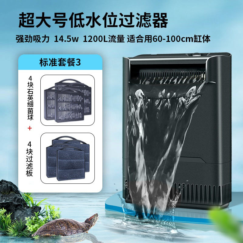 고출력 거북이 수조 필터 박스, 저수위, 저소음 거북이 사육 특수 3-in-1 정수 순환 시스템 수조스토어 가기