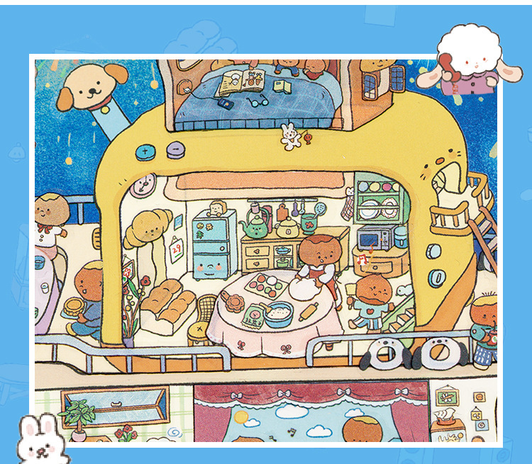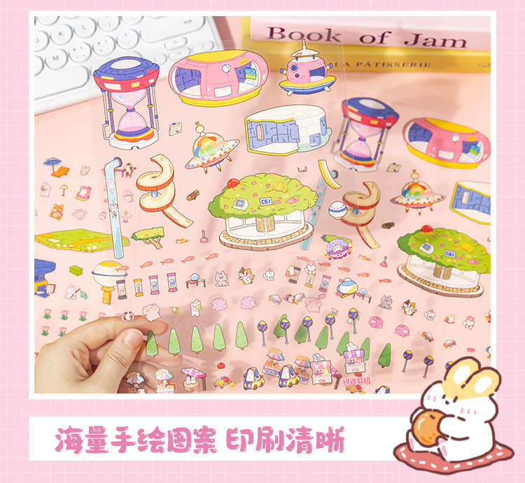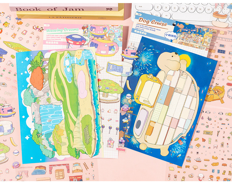 Yuxian의 대형 조경 스티커 미니어처 장면 재미있는 세계 6.0 시각적 3D 스택 입체 캐빈 핸드북 콜라주