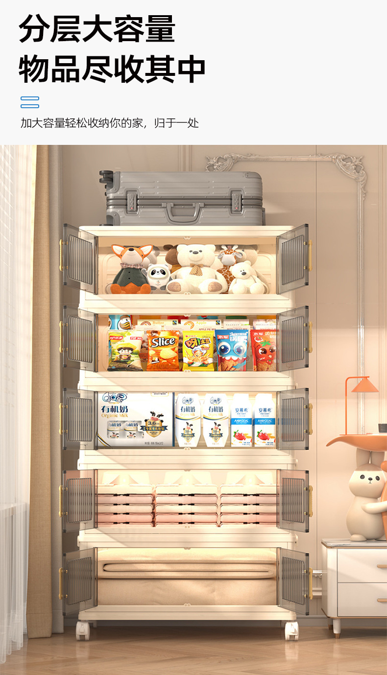 이동식 다층 접이식 보관 캐비닛 가정용 거실 스낵 장난감 보관 캐비닛 현대 간단한 보관 옷장