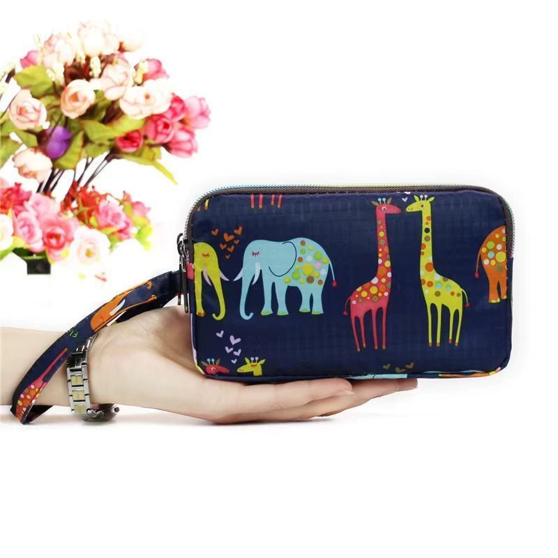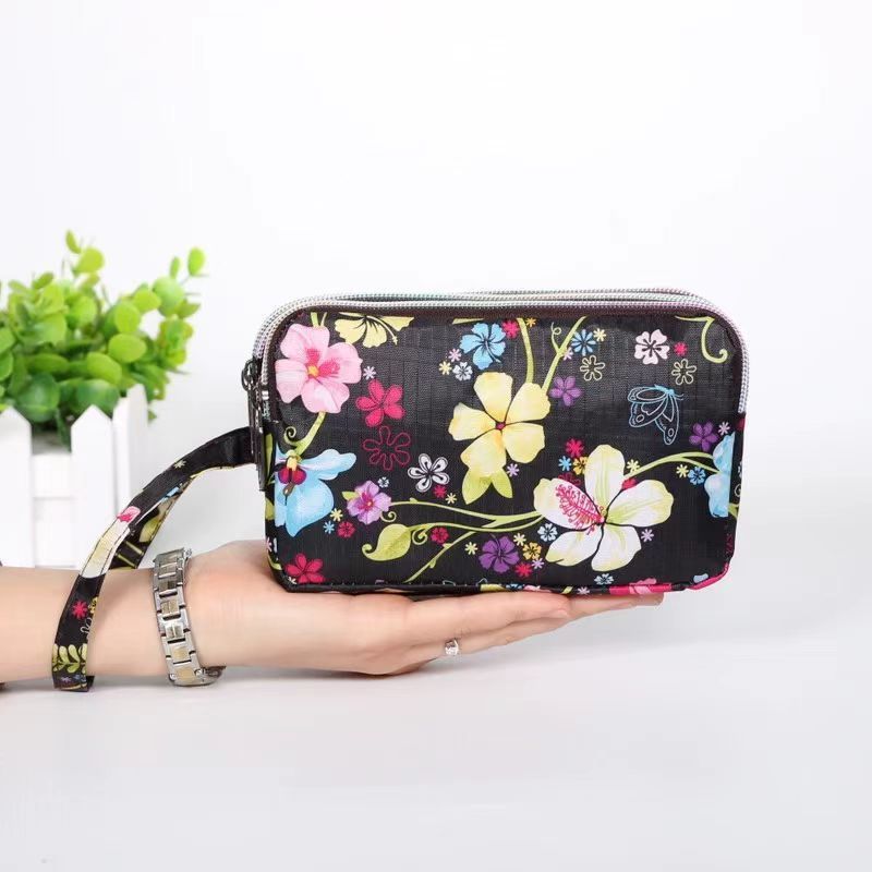 동전 지갑 여성용 긴 캔버스 클러치 백 간단한 3 층 지퍼 핸드백 여성용 소형 가방 대용량 휴대 전화 가방