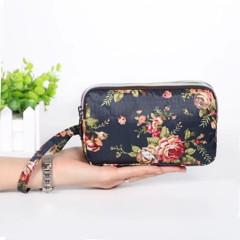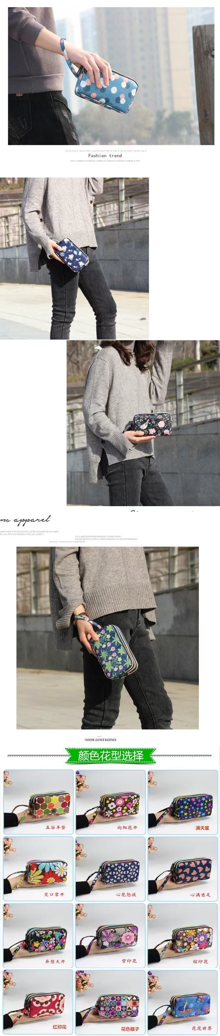 동전 지갑 여성용 긴 캔버스 클러치 백 간단한 3 층 지퍼 핸드백 여성용 소형 가방 대용량 휴대 전화 가방스토어 가기