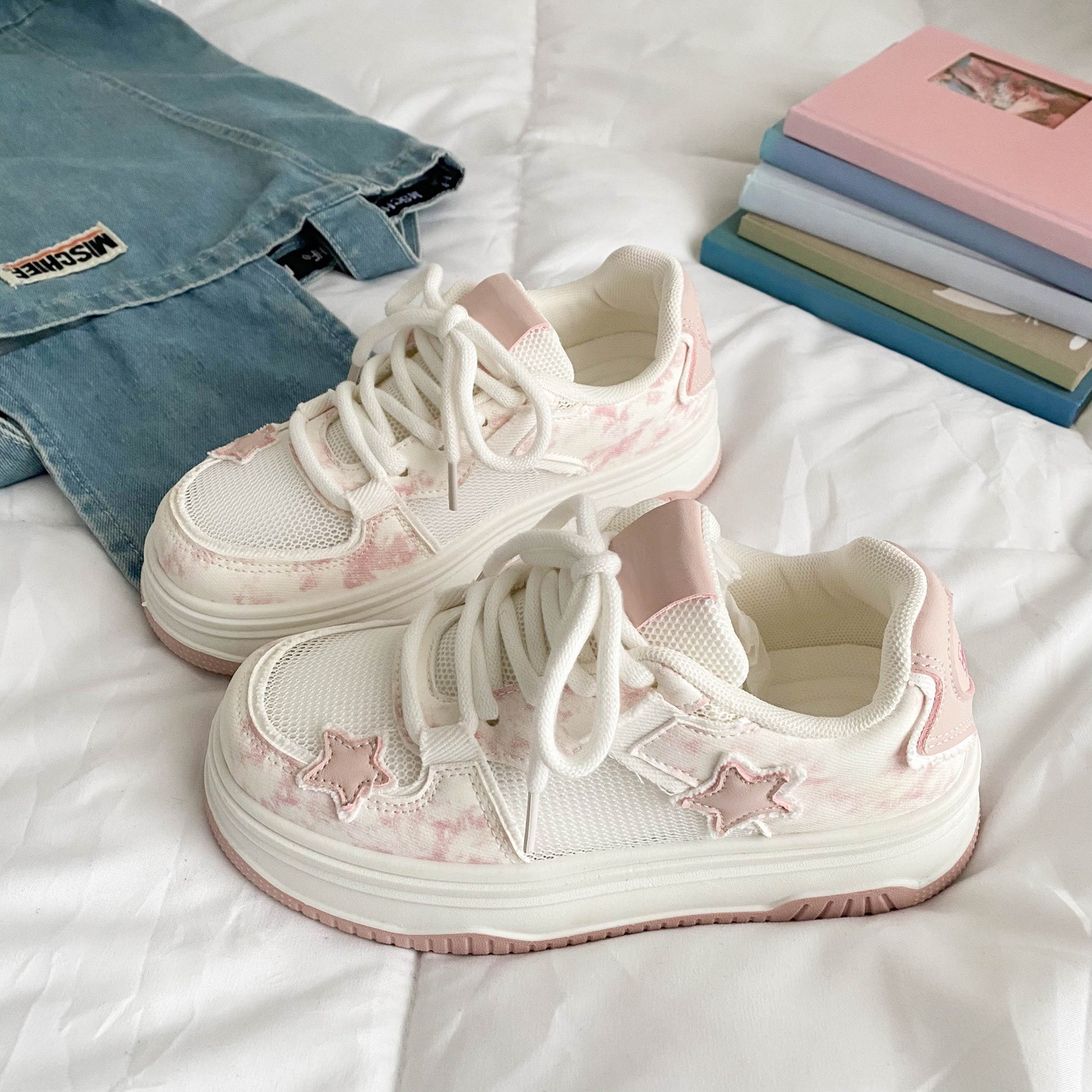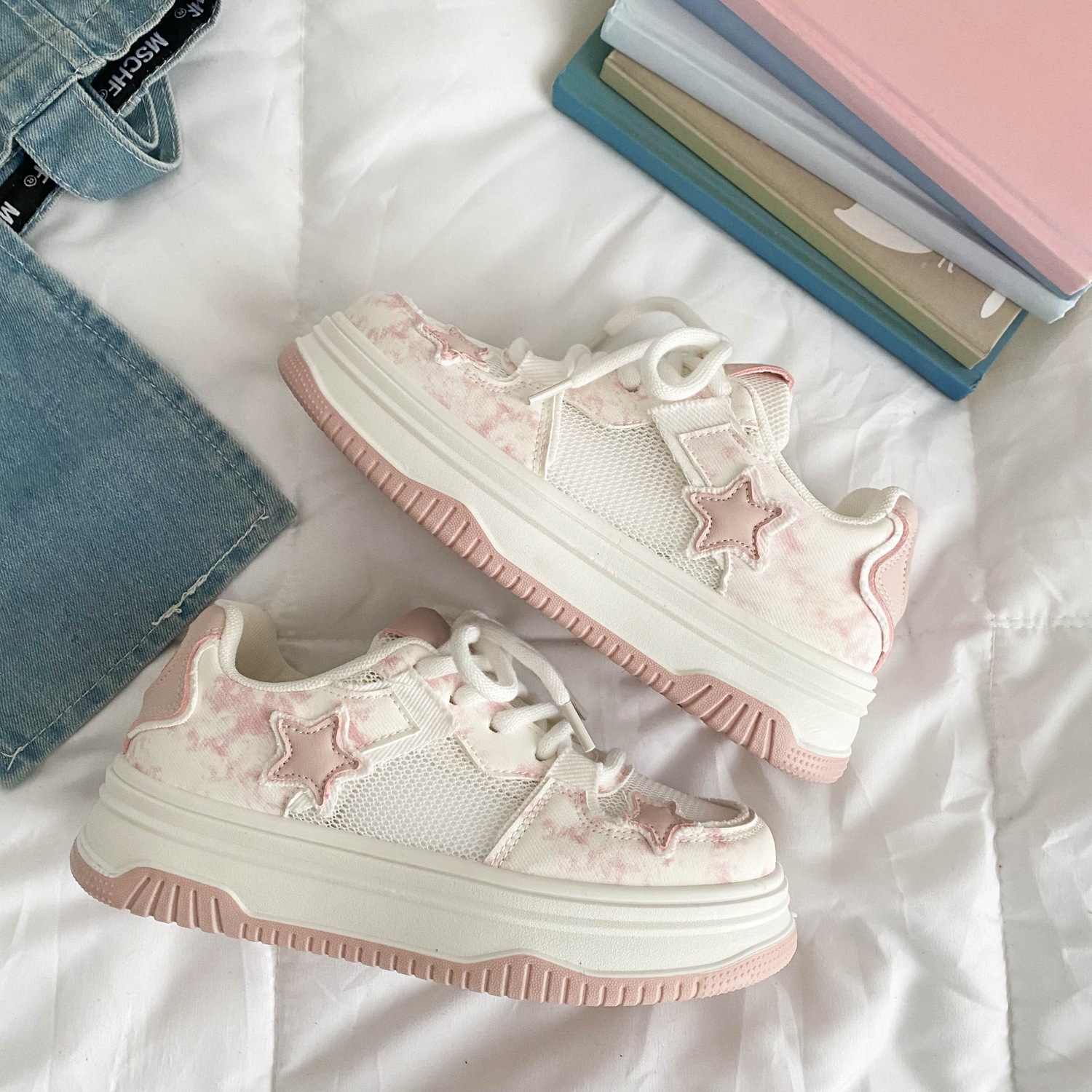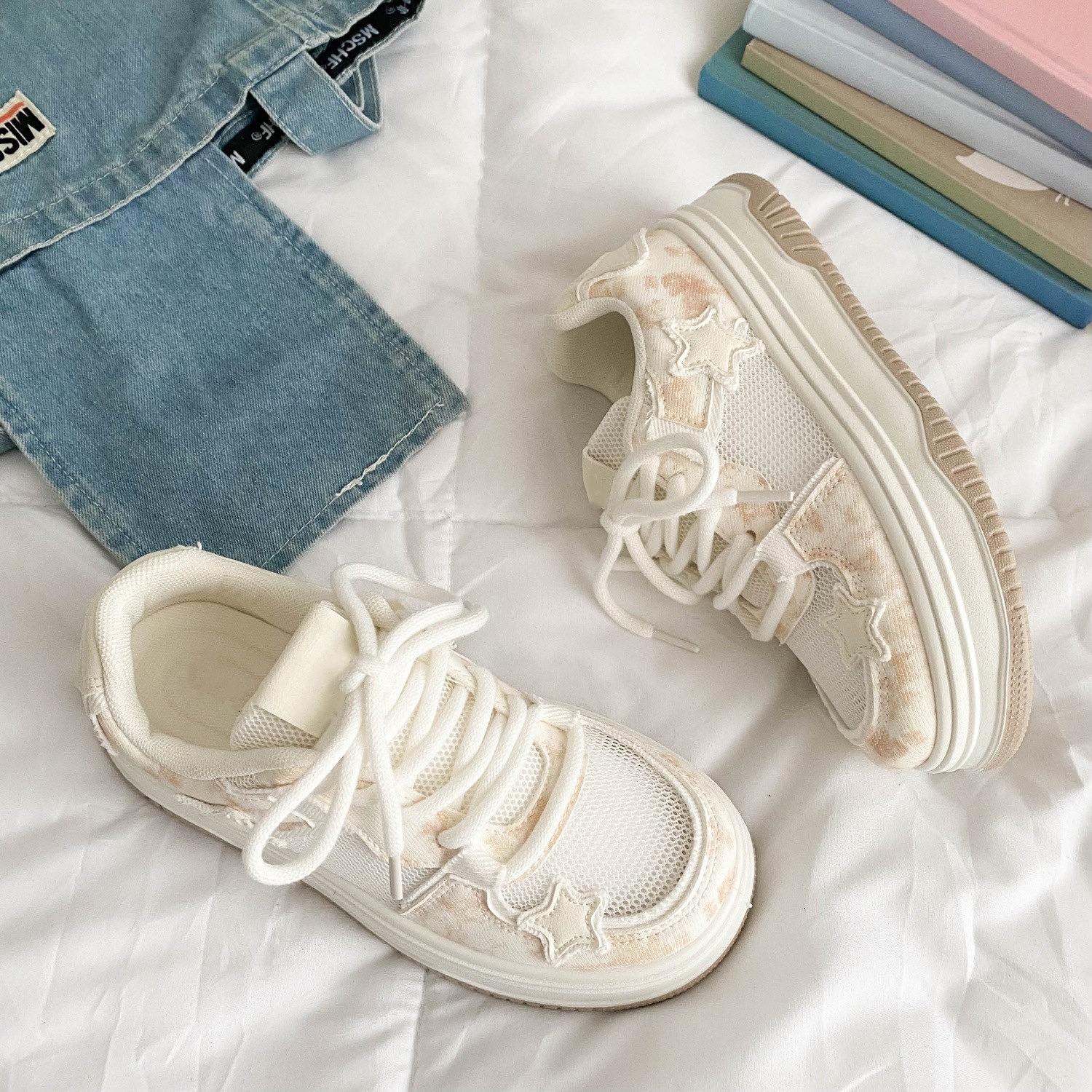 여름 여성 신발 플랫폼 빵 신발 여성 통기성 메쉬 메쉬 신발 스커트 틈새 흰색 신발 캐주얼 스포츠 보드 신발스토어 가기