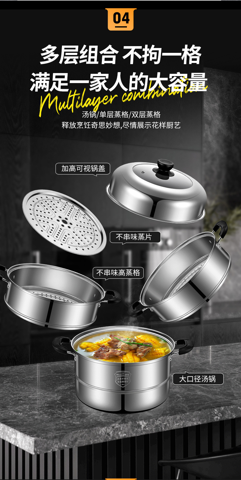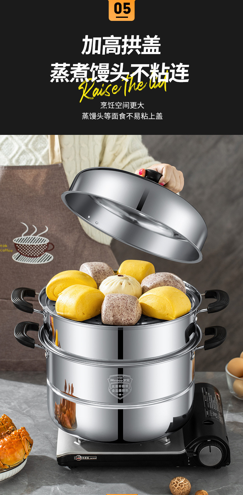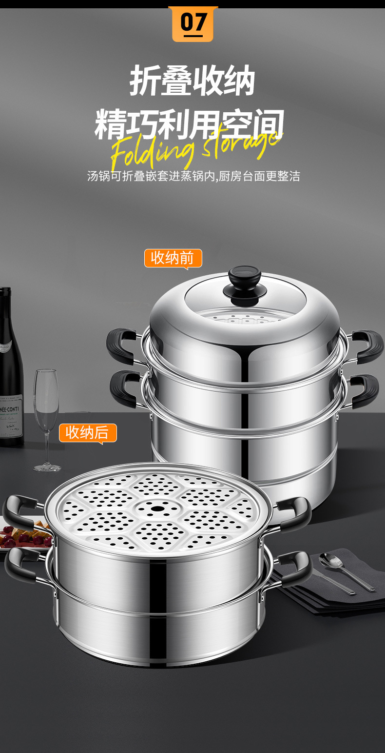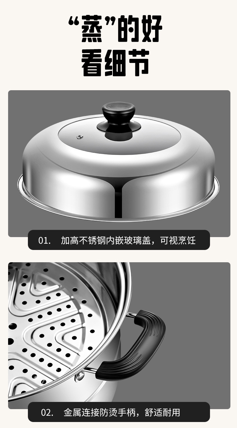 증기선 가정용 스테인레스 스틸 가스 유도 밥솥을위한 소형 2 층 3 층 증기선 대형 기선