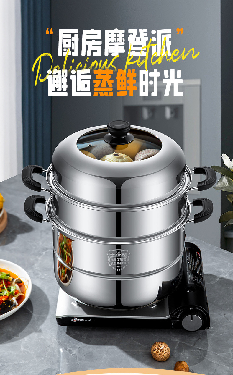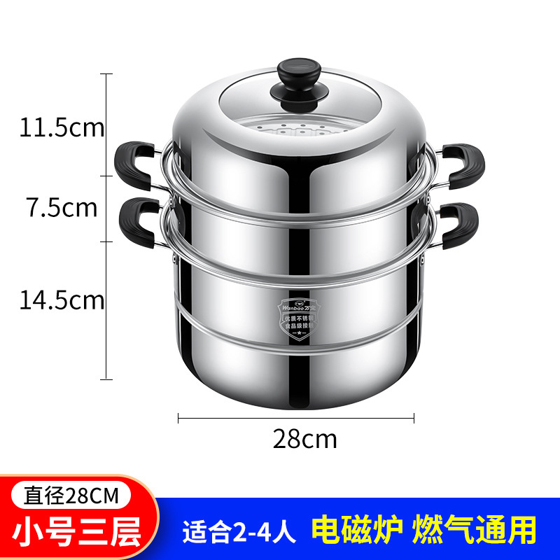증기선 가정용 스테인레스 스틸 가스 유도 밥솥을위한 소형 2 층 3 층 증기선 대형 기선스토어 가기