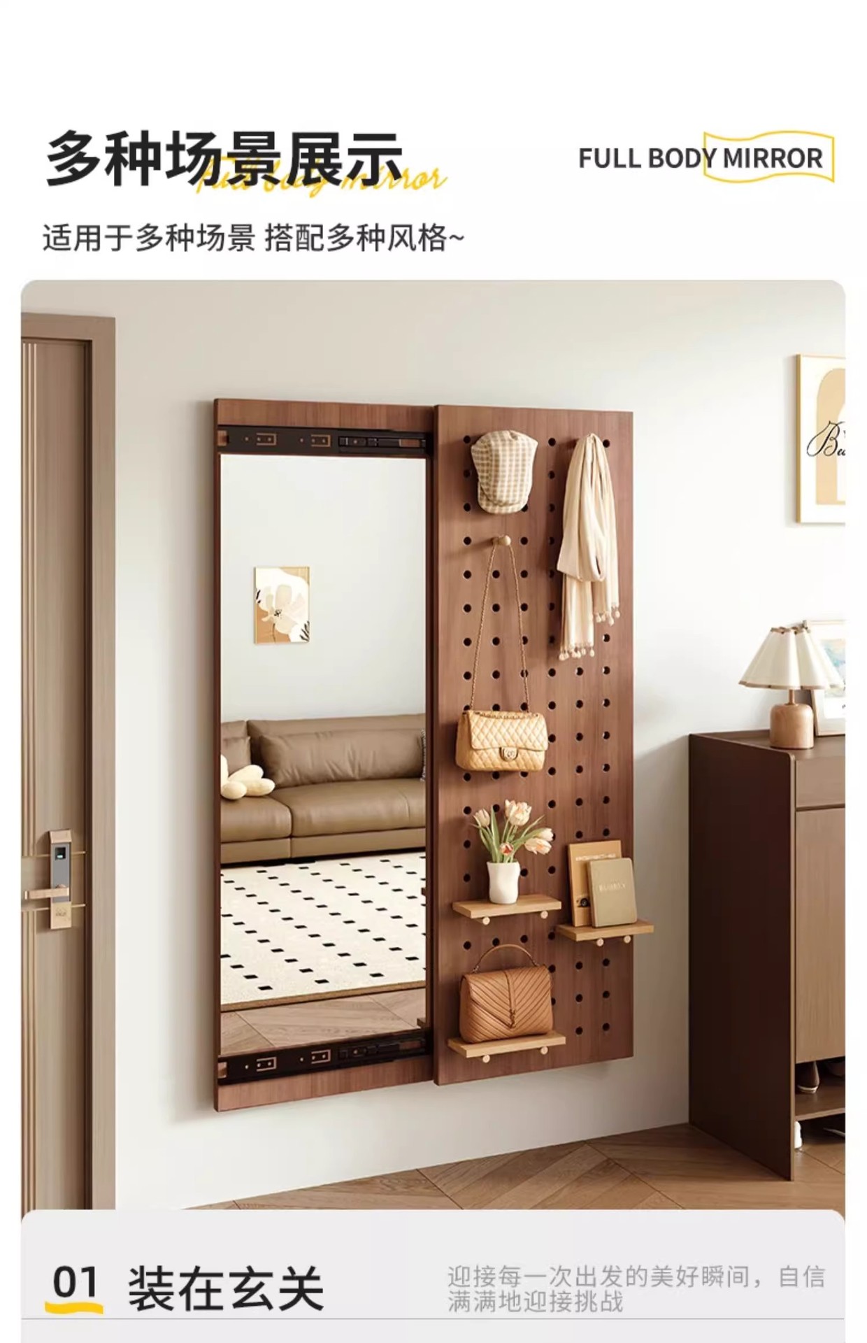 원목 홀보드 드레싱거울, 숨겨진 전신거울, 가정용 슬라이딩, 닫을 수 있는 벽걸이형 현관 피팅거울스토어 가기
