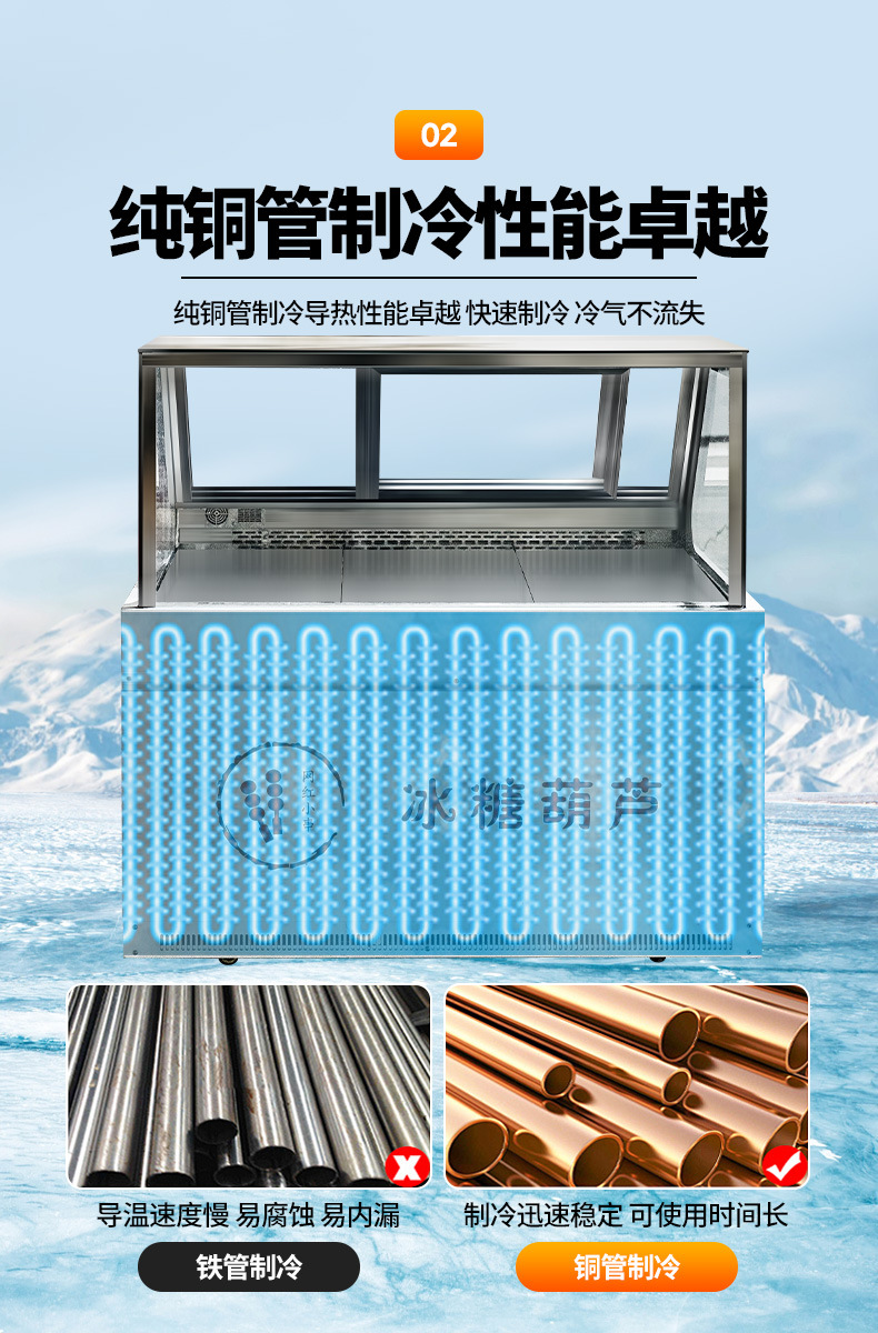 설탕구이 상업용 냉장 진열장, 공냉식 냉동 절단 및 볶음 요구르트 보관 캐비닛, 아이스크림 및 볶음 요구르트 냉동 캐비닛