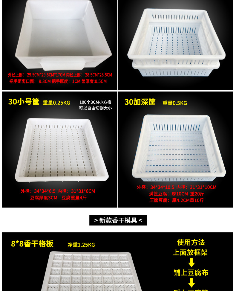 두부 금형 두부 바구니 44 콩 제품 상자 플라스틱 보드 오래 된 부드러운 두부 상자 홈 상업용 두꺼운 향기로운 말린 그릴 판스토어 가기