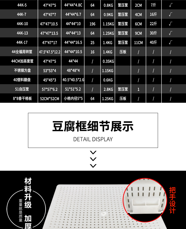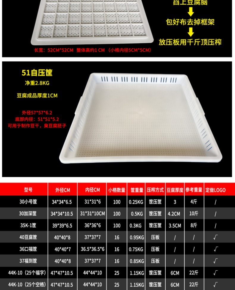두부 금형 두부 바구니 44 콩 제품 상자 플라스틱 보드 오래 된 부드러운 두부 상자 홈 상업용 두꺼운 향기로운 말린 그릴 판