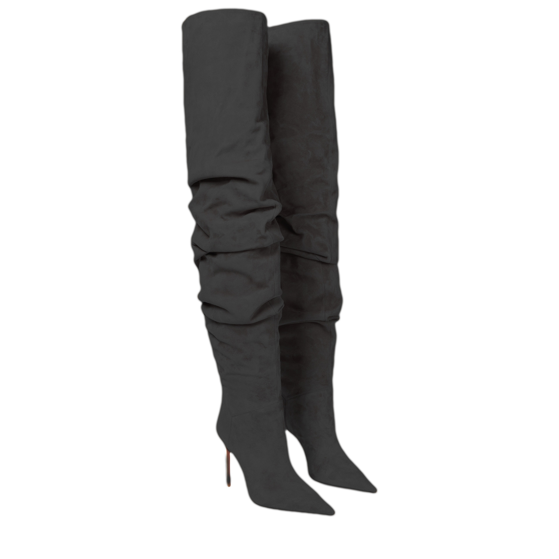 대외 무역 여성 신발 유럽과 미국의 패션 뾰족한 발가락 스틸레토 힐 허벅지 부츠 가을, 겨울 무릎 위 섹시한 스웨이드 대형 부츠