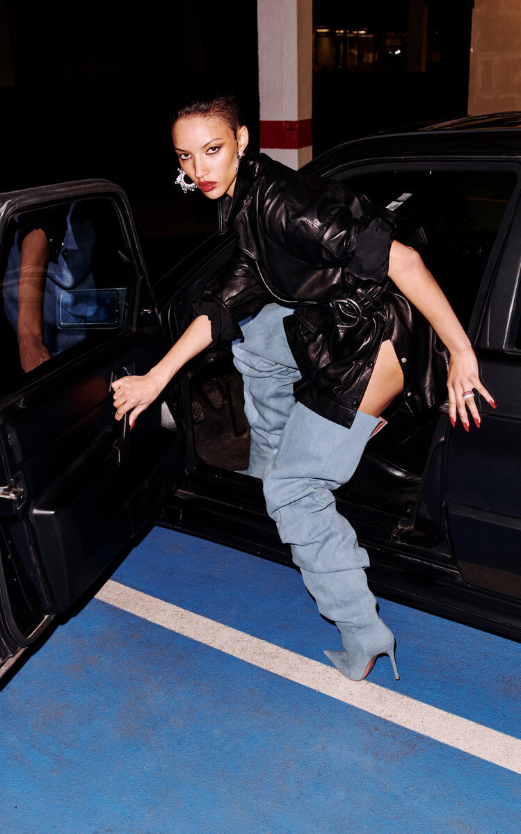 대외 무역 여성 신발 유럽과 미국의 패션 뾰족한 발가락 스틸레토 힐 허벅지 부츠 가을, 겨울 무릎 위 섹시한 스웨이드 대형 부츠스토어 가기