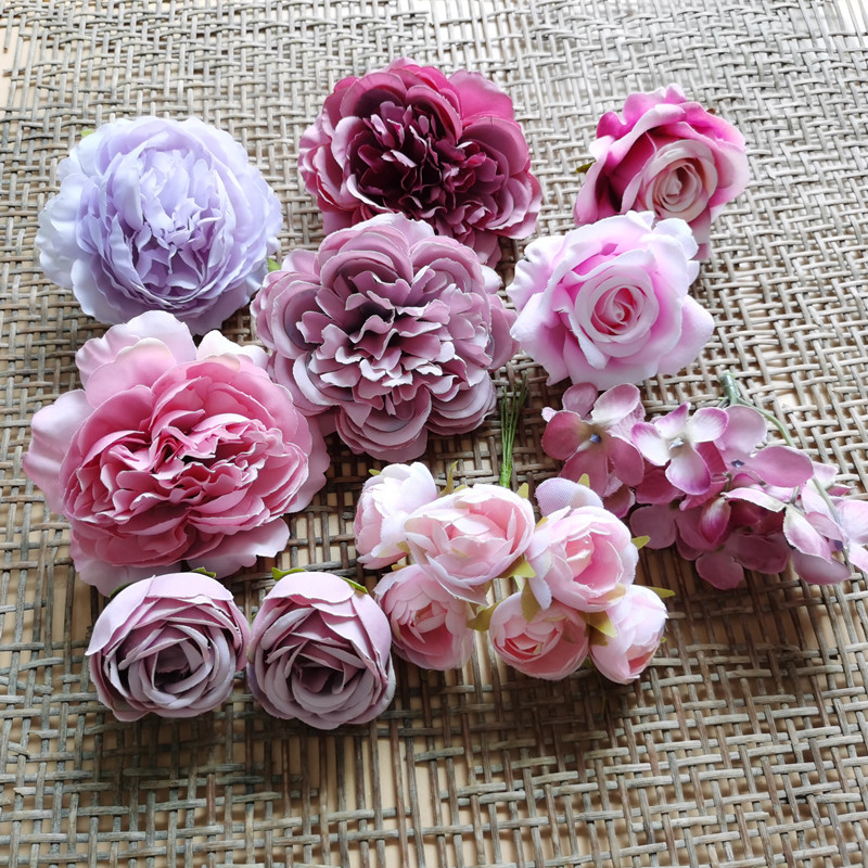 재료 패키지 꽃 바다 DIY 수제 일반 인공 꽃 결혼식 꽃 벽 코사지 머리 장식 유화 스타일