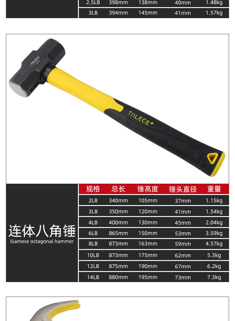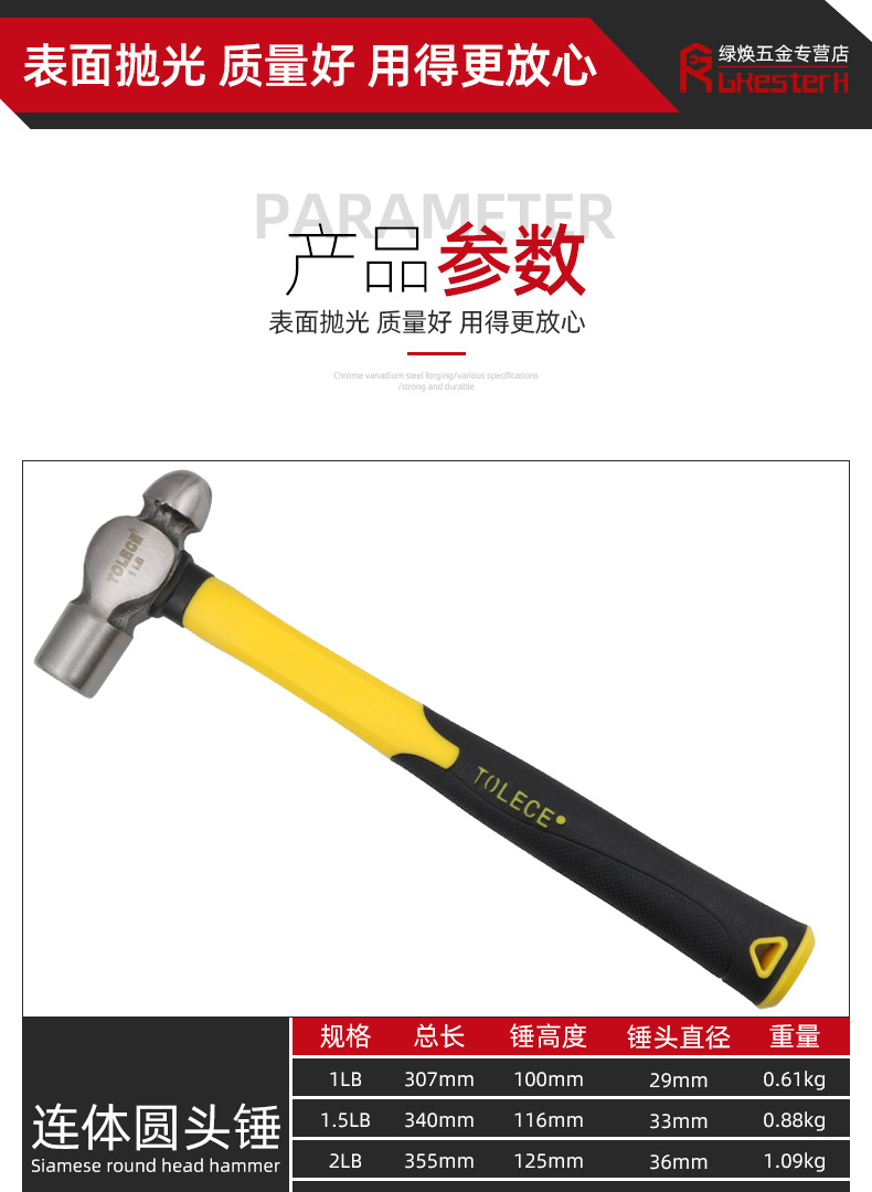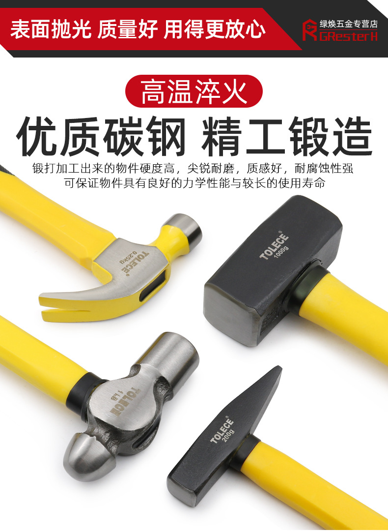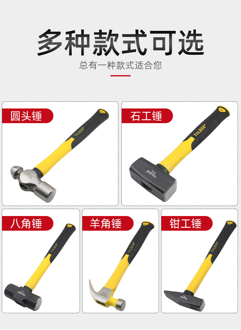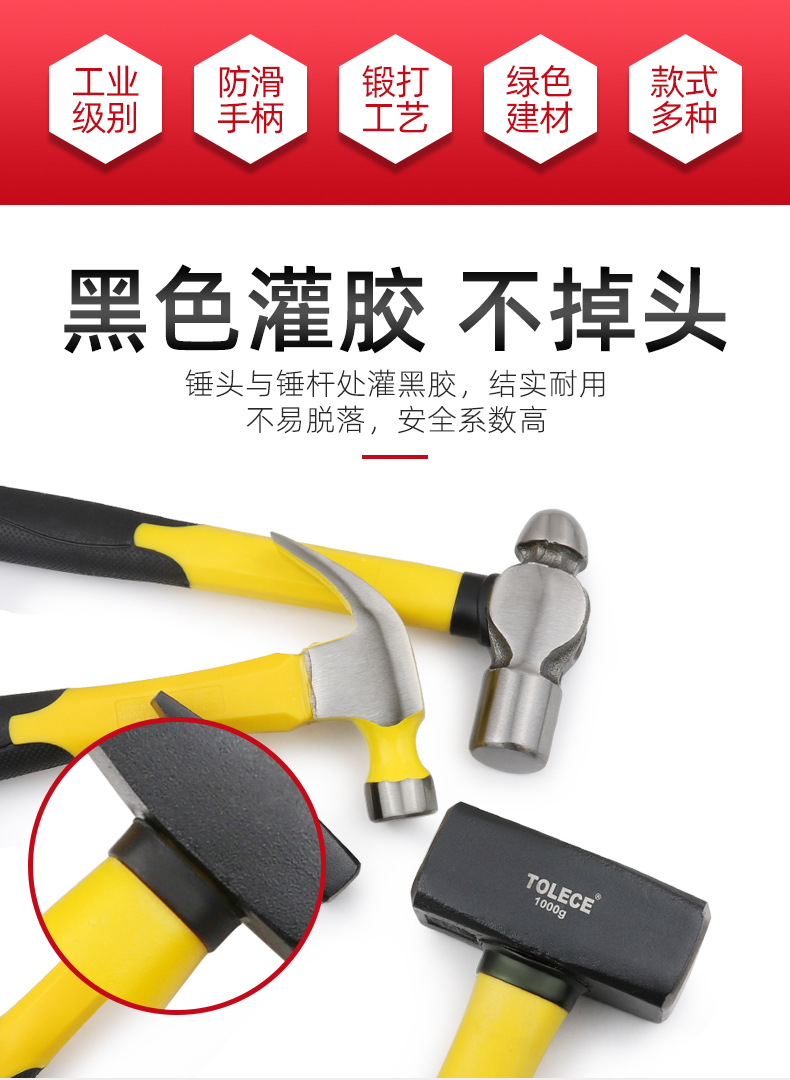 팔각형 망치 섬유 연속 손잡이 강철 석공 철 둥근 머리 뿔 망치 목공 작은 망치 망치 도구 망치 헤드스토어 가기