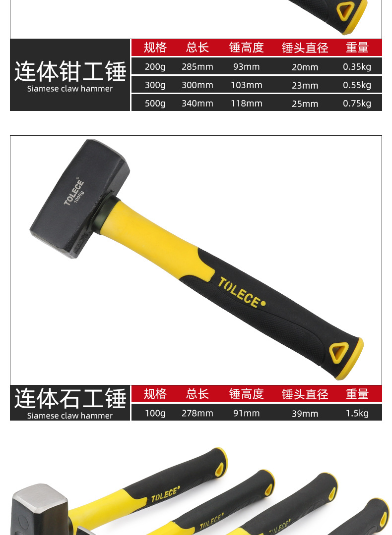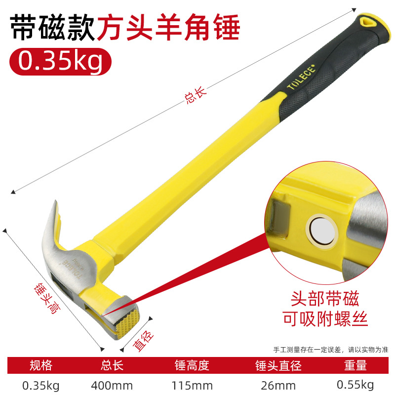 • 0.35kg 클로 해머(사각형 헤드 + 자석)