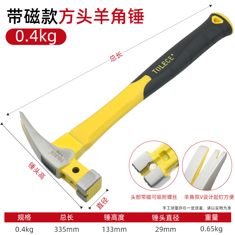 • 0.4kg 클로 해머(사각형 헤드 + 자석)