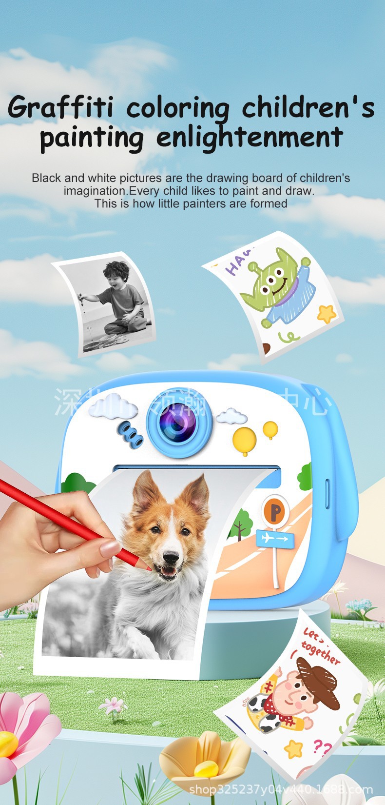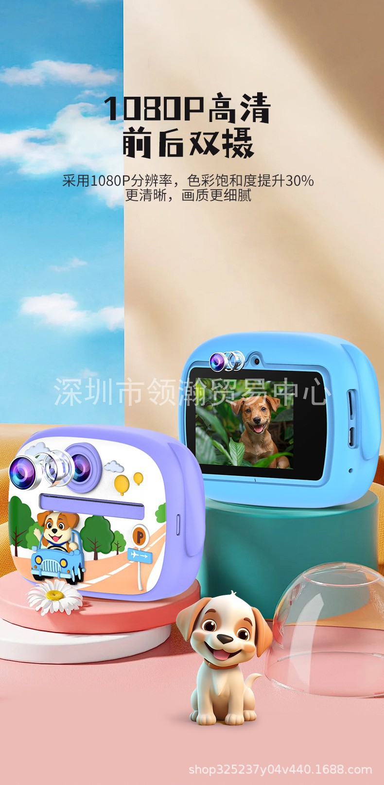 국경 간 어린이 인쇄 카메라 고화질 디지털 듀얼 카메라 비디오 업로드 휴대 전화 폴라로이드 만화 카메라