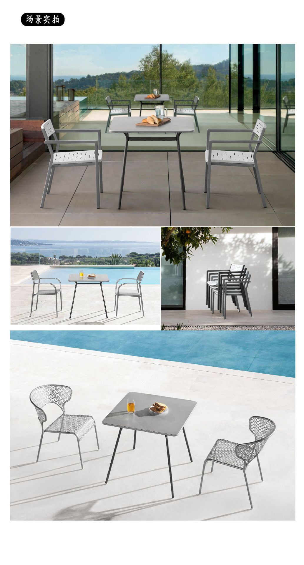 야외 식탁과 의자 조합 레스토랑 테이블과 의자 금속 테이블과 의자 전체 알루미늄 의자스토어 가기