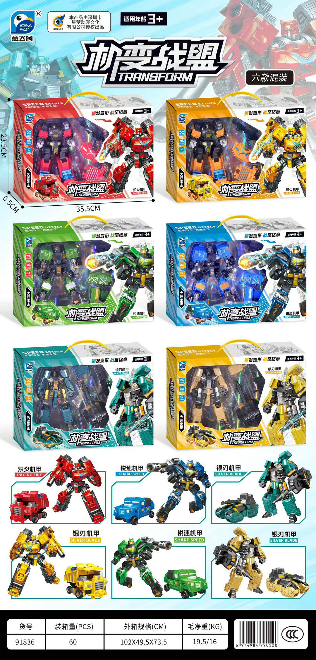 기계 동맹 변형 로봇 자동차 6 혼합 소년과 어린이 장난감 실속 기관 등록 도매