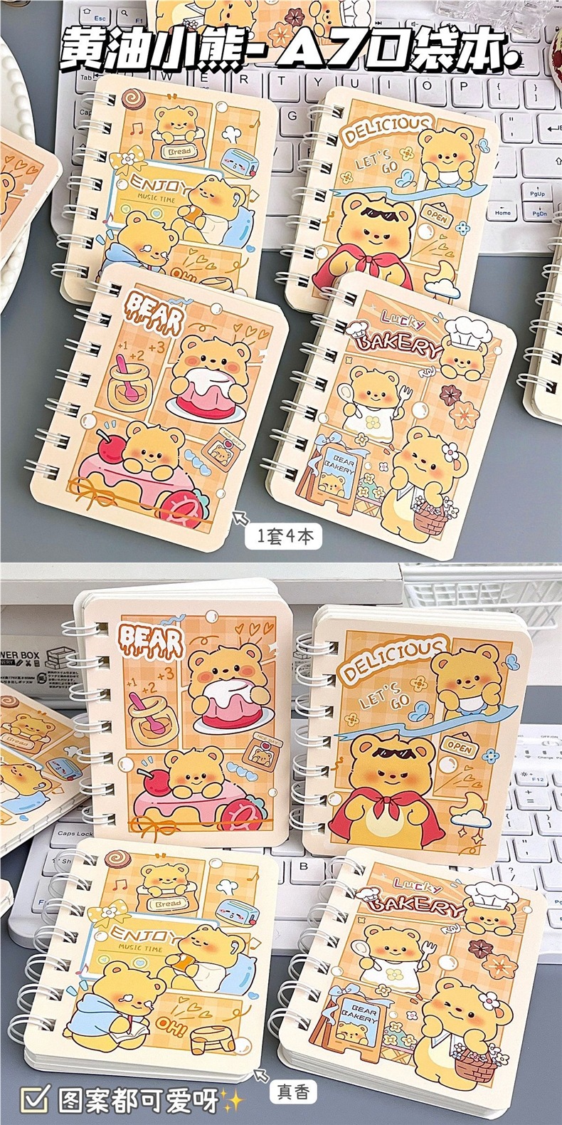 새로운 버터 베어 코일 노트, 미모가 좋은 학생을 위한 미니 휴대용 두꺼운 가로줄 노트