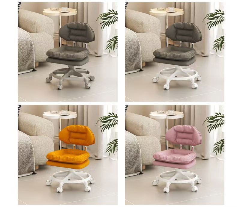 거실 무음 범용 풀리 낮은 의자 홈 커피 테이블 작은 소파 의자 등받이가있는 두꺼운 이동식 신발 교환 의자스토어 가기