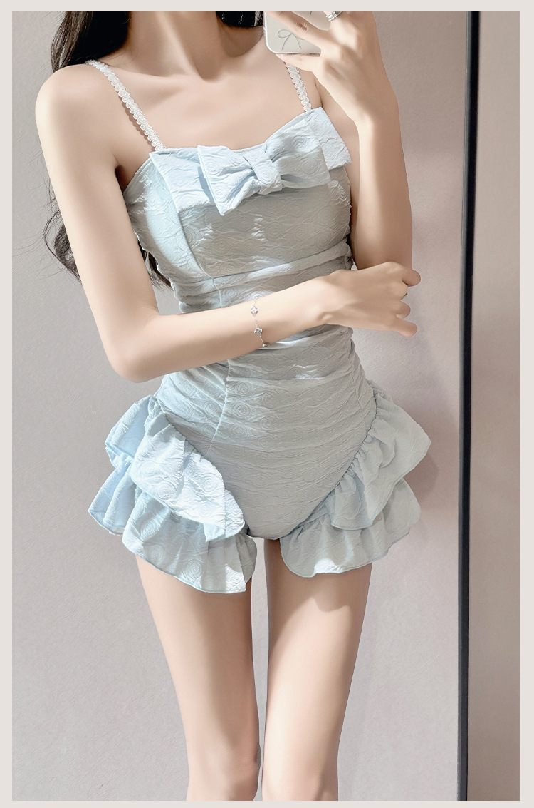 2025 새로운 수영복 여성 원피스 스커트 스타일 보수적 슬리밍 몸 커버 요정 스타일 온천 휴가 수영복 도매