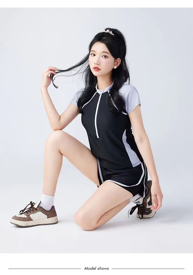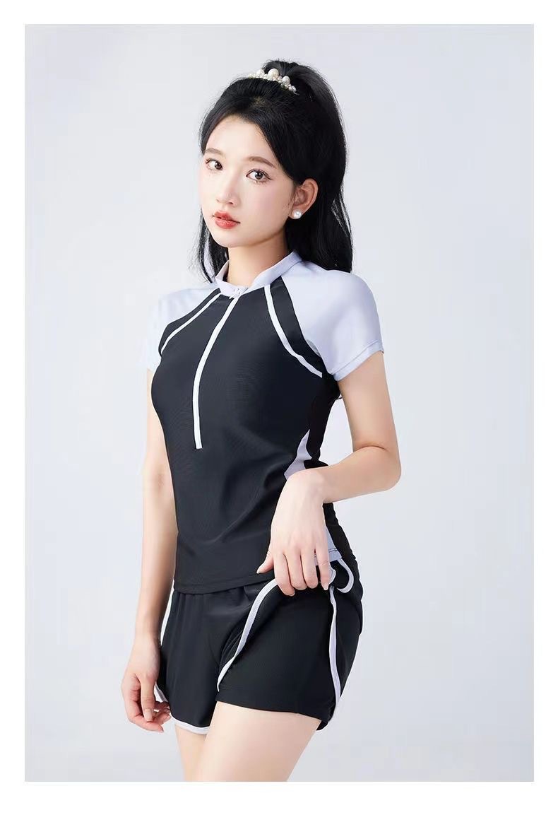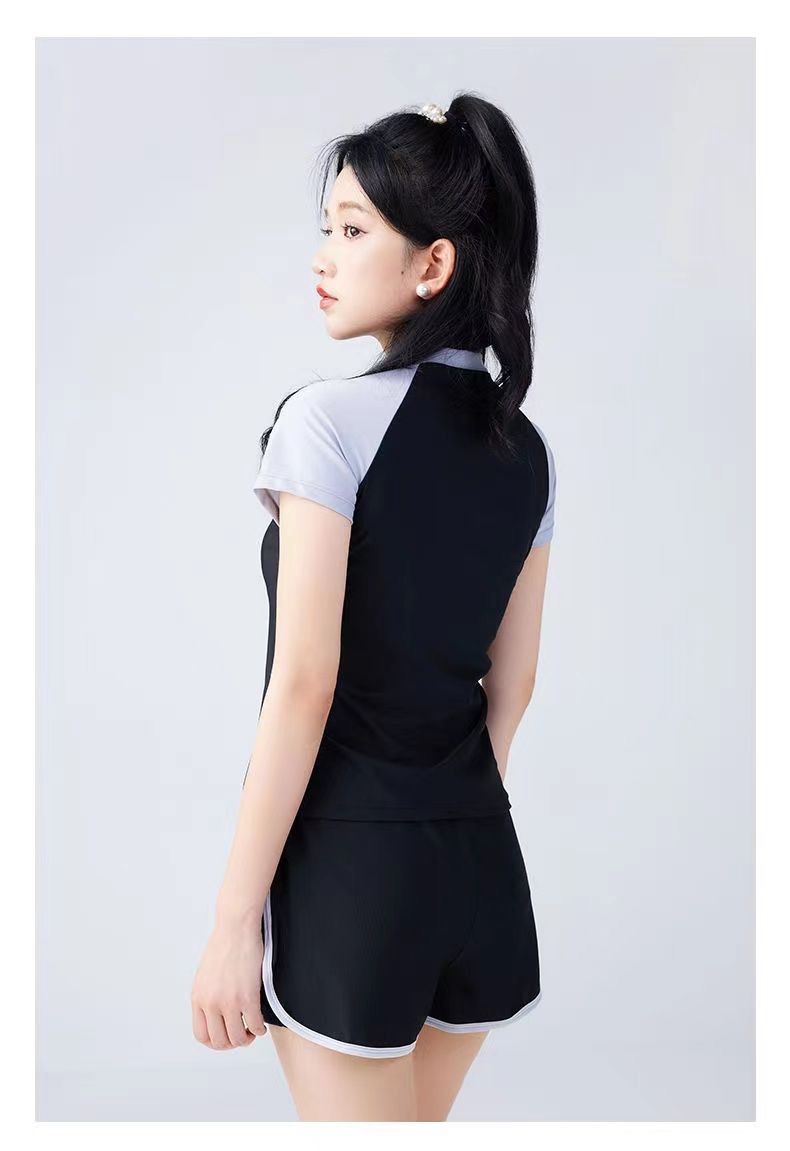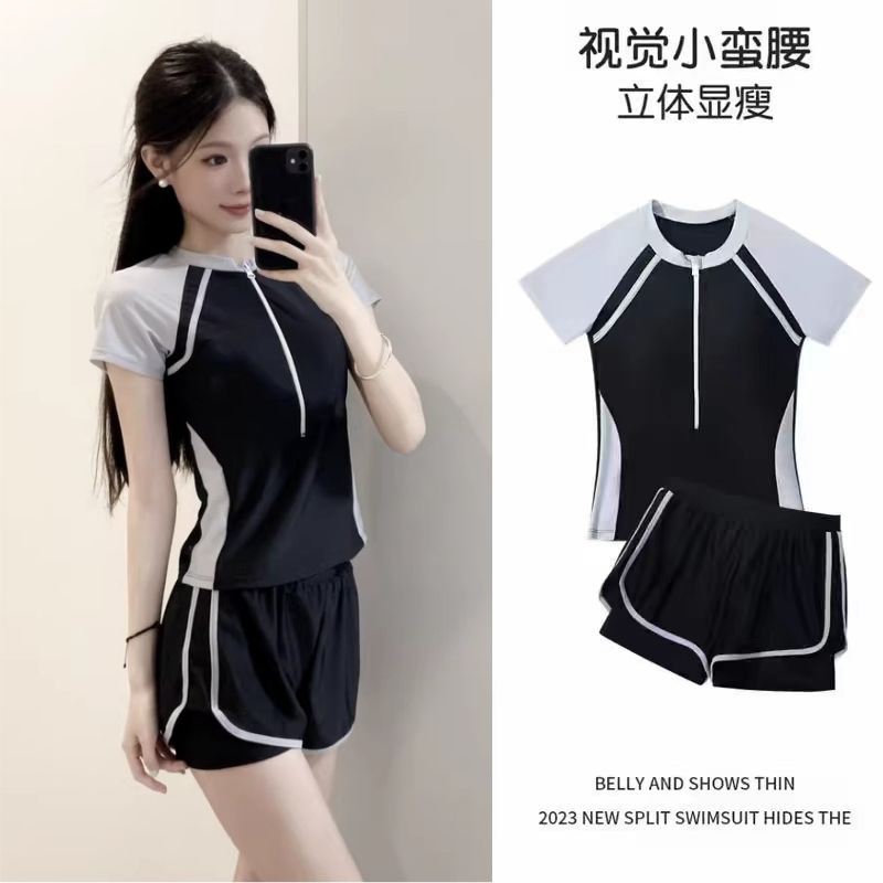 수영복 여성 캐주얼 스포츠 스타일 슬림 핏 슬림 핏 보수적 인 분할 수영복 Ins 스타일 간단한 배꼽 커버 수영복 도매