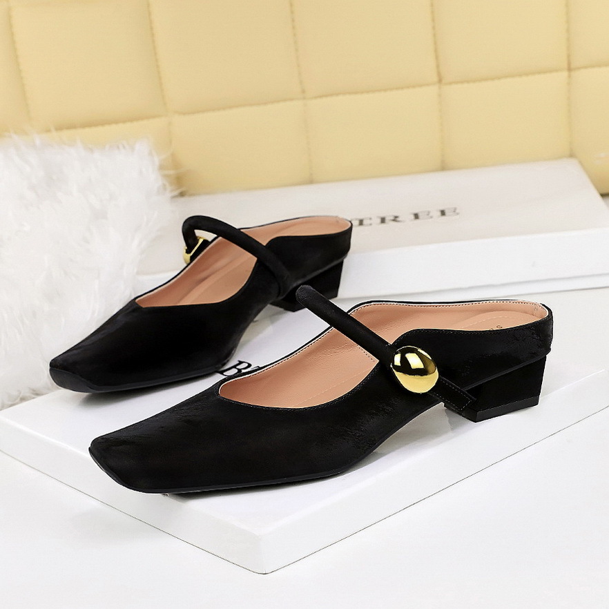 1062-1 유럽과 미국의 여성용 얕은 입 반슬리퍼, 두꺼운 굽, 낮은 굽, 스퀘어 토 메리제인 슈즈, 우아한 원라인 여성화스토어 가기