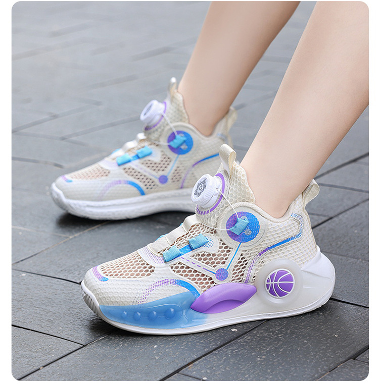소년 운동화 2025 봄과 여름 새로운 통기성 더블 메쉬 싱글 메쉬 미끄럼 방지 경량 회전 버클 농구 신발