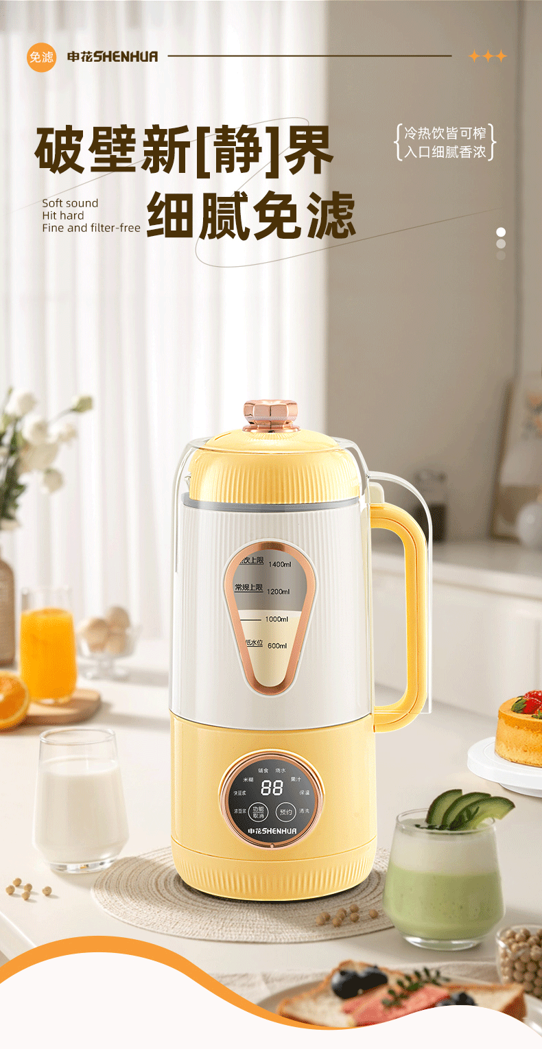 Shenhua 가열 두유 기계 가정용 벽 파괴, 조리 없음, 필터 없음 요리 주스 보충 식품 건강 쌀 시리얼 기계 완전 자동스토어 가기