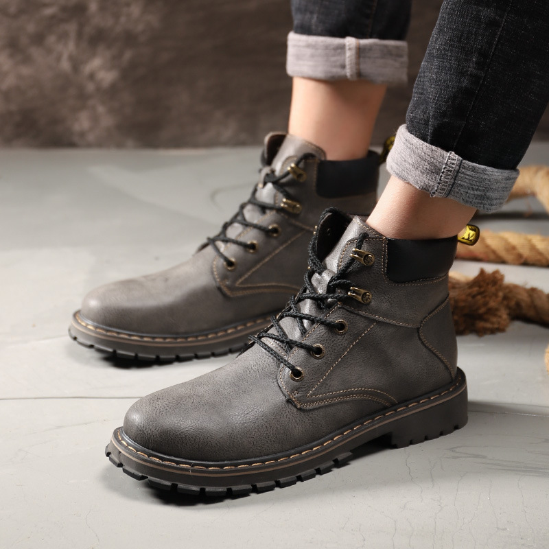 크로스보더 플러스 사이즈 아마존 마틴 부츠 남성용 미드하이탑 가죽 플러스 벨벳 코튼 슈즈 숏부츠 미드탑 가죽 부츠 워크 부츠스토어 가기