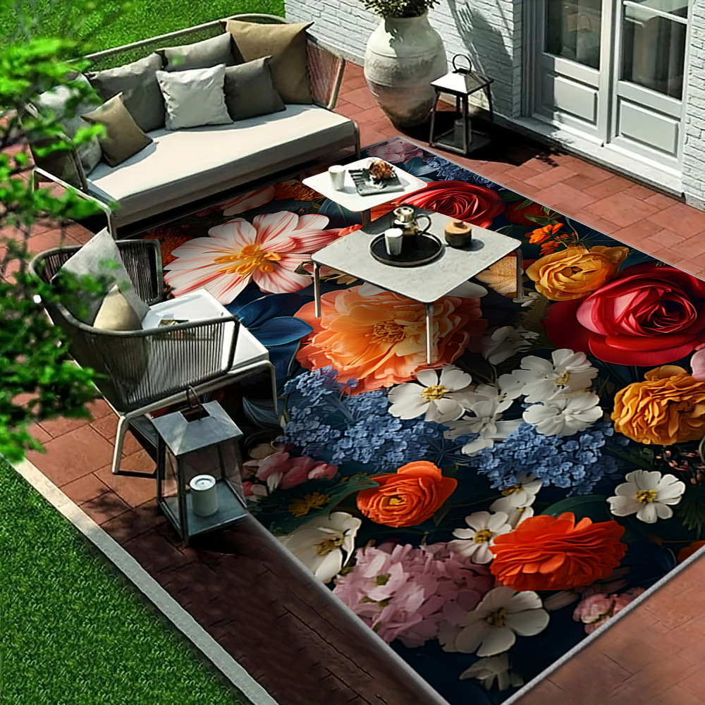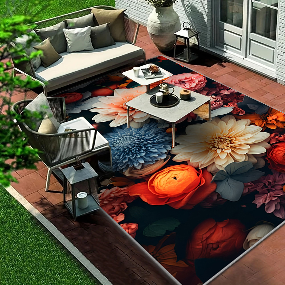 국경 간 Amazon temu 꽃 카펫 야외 휴대용 쉬운 관리 피크닉 매트 거실 얼룩 방지 및 내마모성 대형 카펫